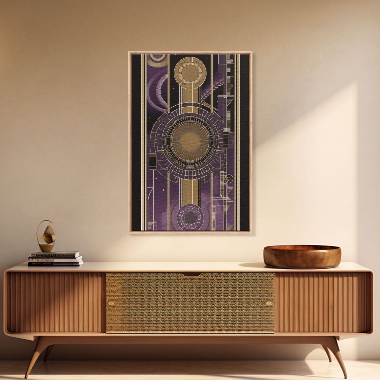 Midcentury Modern Wall art | Framed Canvas Print | Art Deco | Pattern art | Purple & gold art | Abstract art | Ornament art | Lines art
