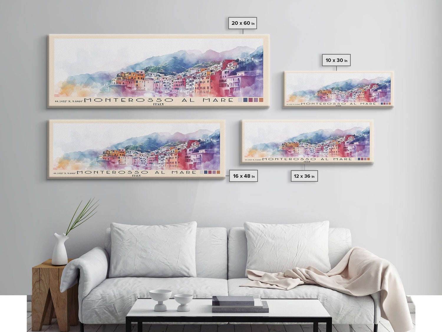 Monterosso al Mare, Italy Watercolor Print, Vacation Gift, Italy Wall Art, Beach Painting, Beach Decor, Large Wall Art, Wood Frame Art - 10x30 Inches / Gallery Wrap Canvas - Ready To Hang is backordered and will ship as soon as it is back in stock.