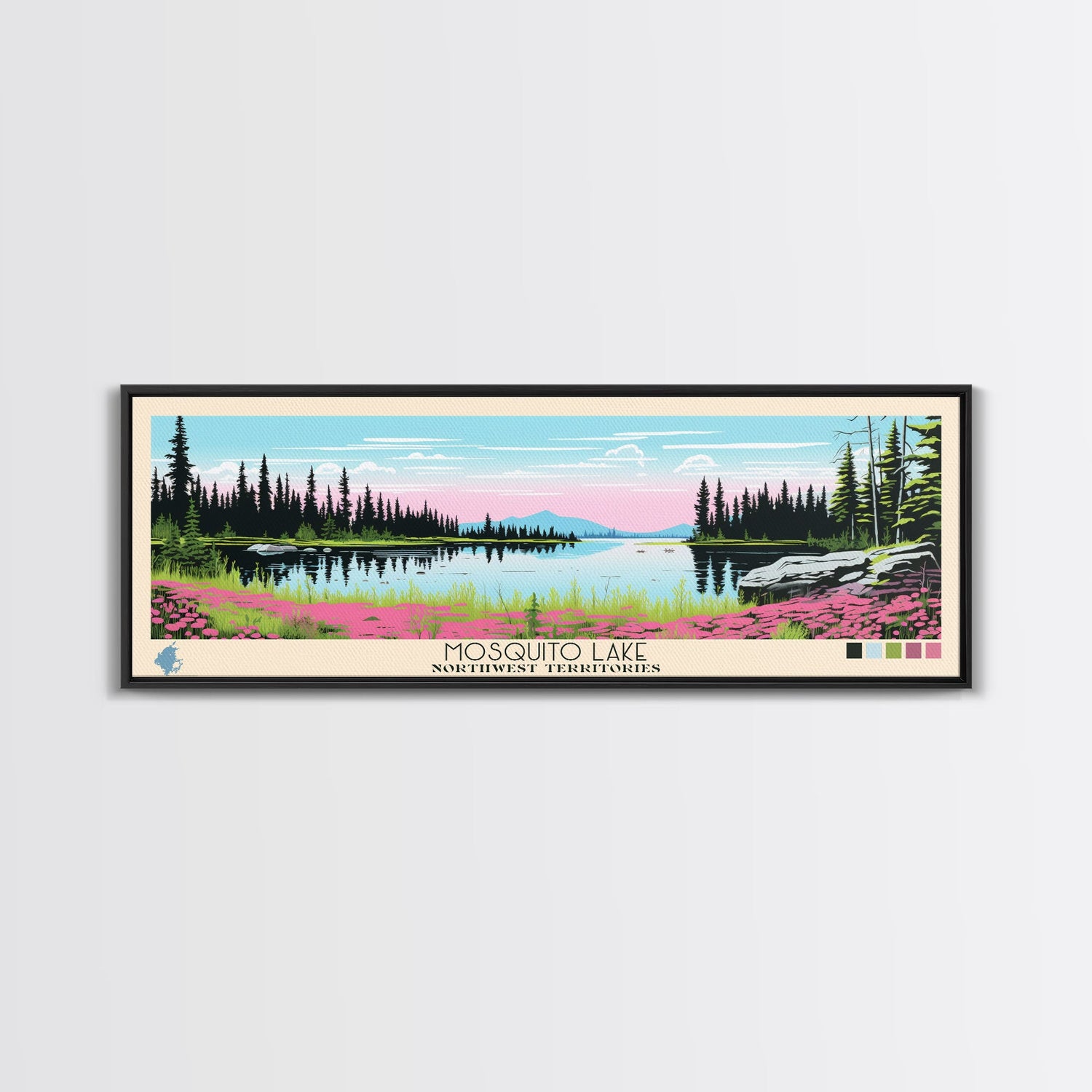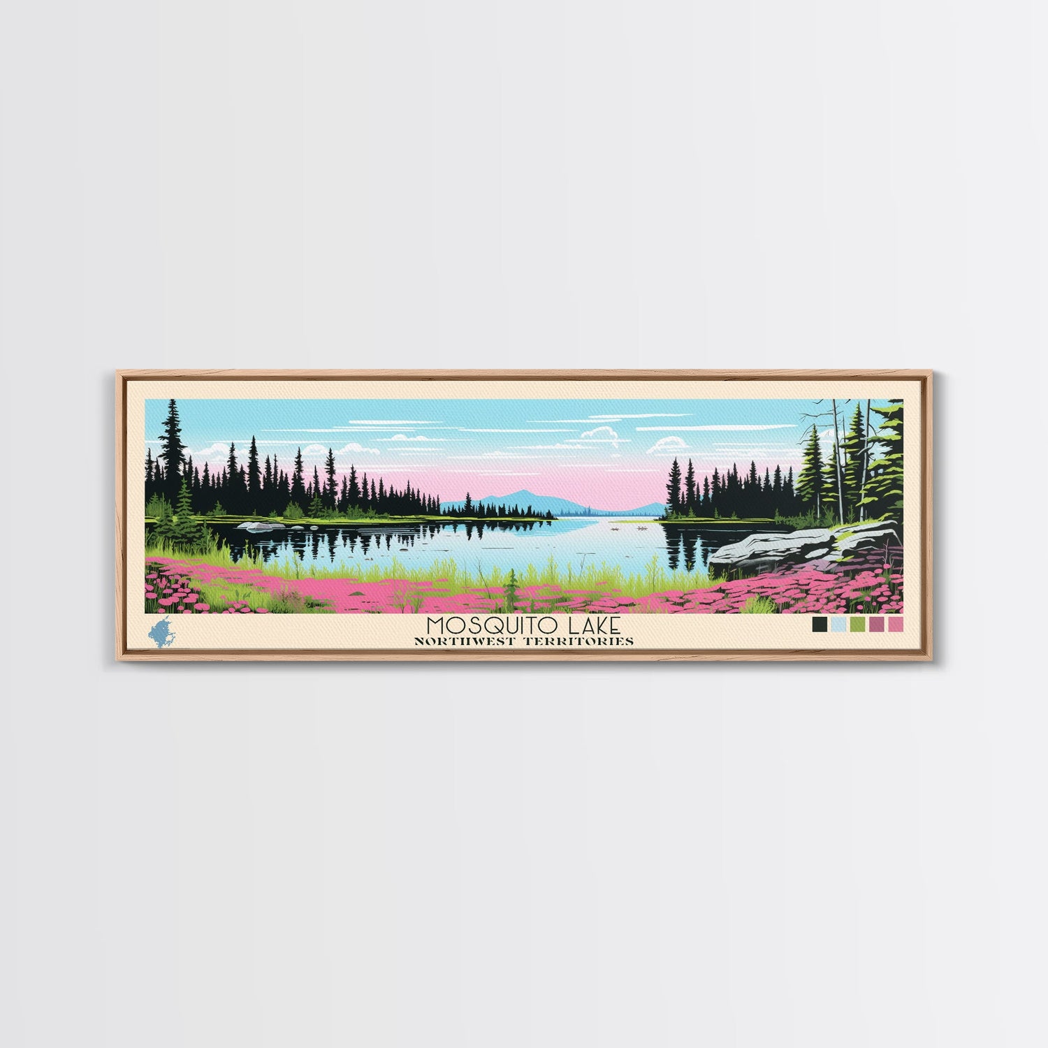 Mosquito Lake, Northwest Territories Framed Canvas Print, Panoramic Wall Art, Midcentury Modern, Pop Art, Home Decor, Travel Poster, Bedroom Art
