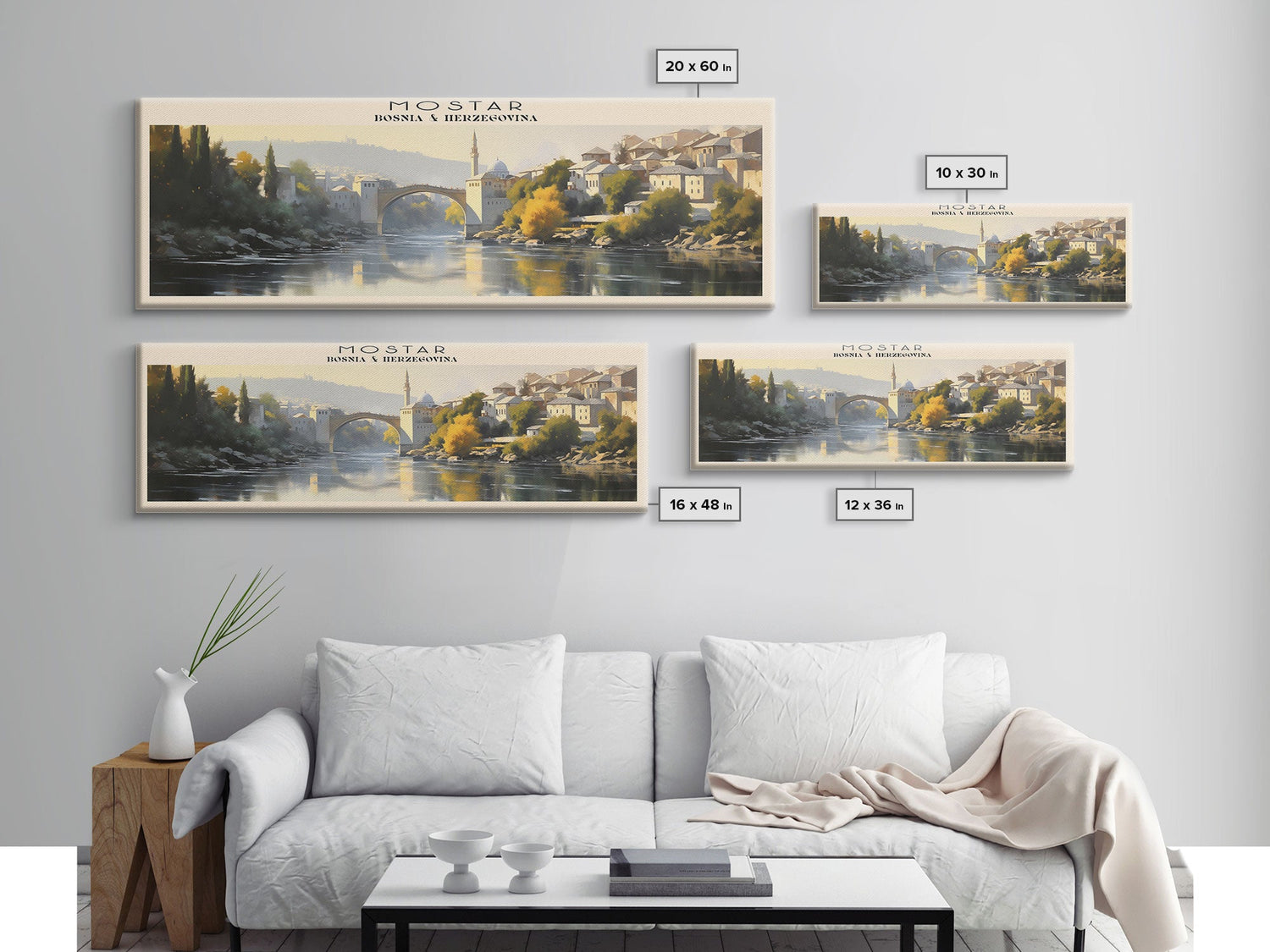 Mostar COUNTRY Travel Poster Print, Framed Canvas Print, COUNTRY Travel Art, Wood Framed Art, Wall Hanging, Home Decor - 10x30 Inches / No Frame - Stretched Canvas Only is backordered and will ship as soon as it is back in stock.
