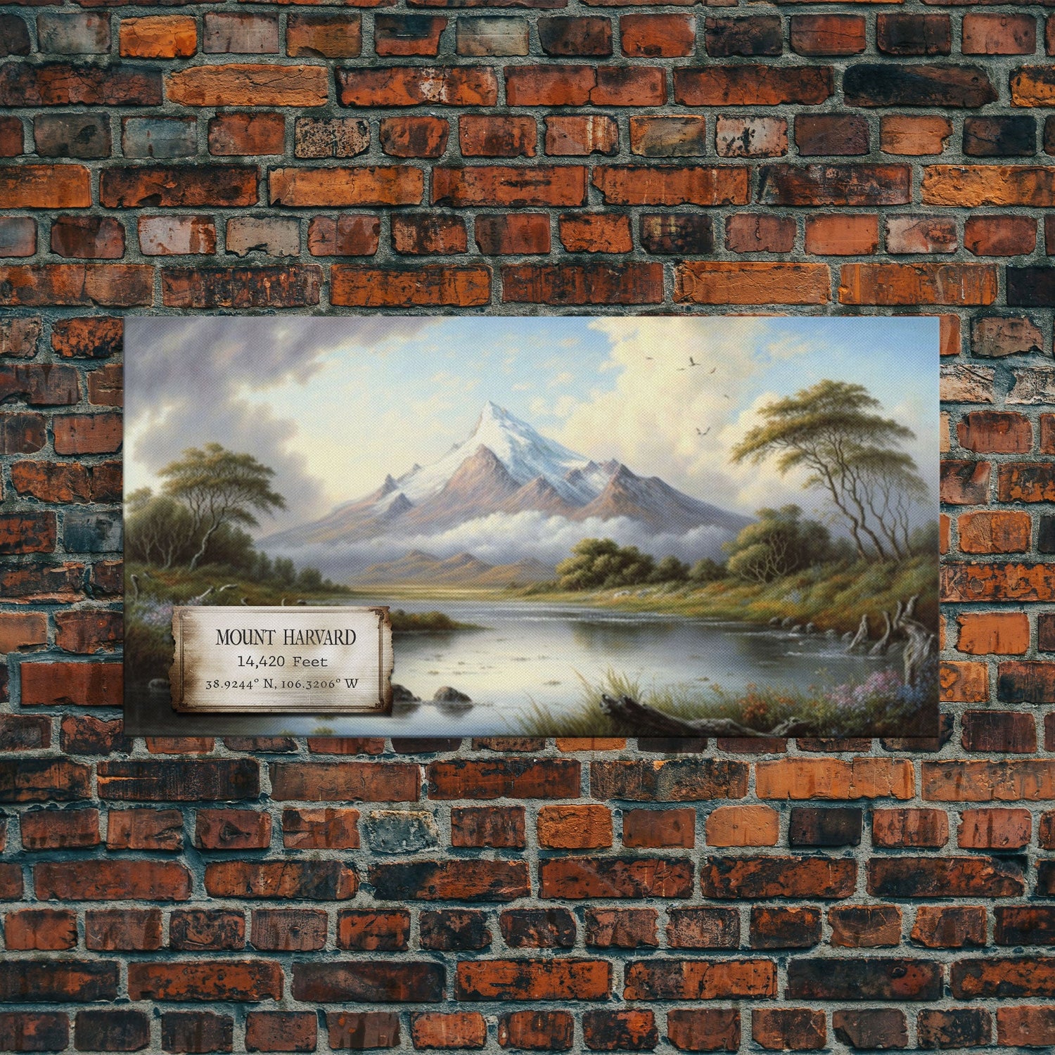 Mount Harvard, Rocky Mountains Colorado Art, Travel Poster Wall Art, Framed Canvas Print, American Mountains, Mountain Landscape Painting - 10x20 Inches / No Frame - Stretched Canvas Only is backordered and will ship as soon as it is back in stock.