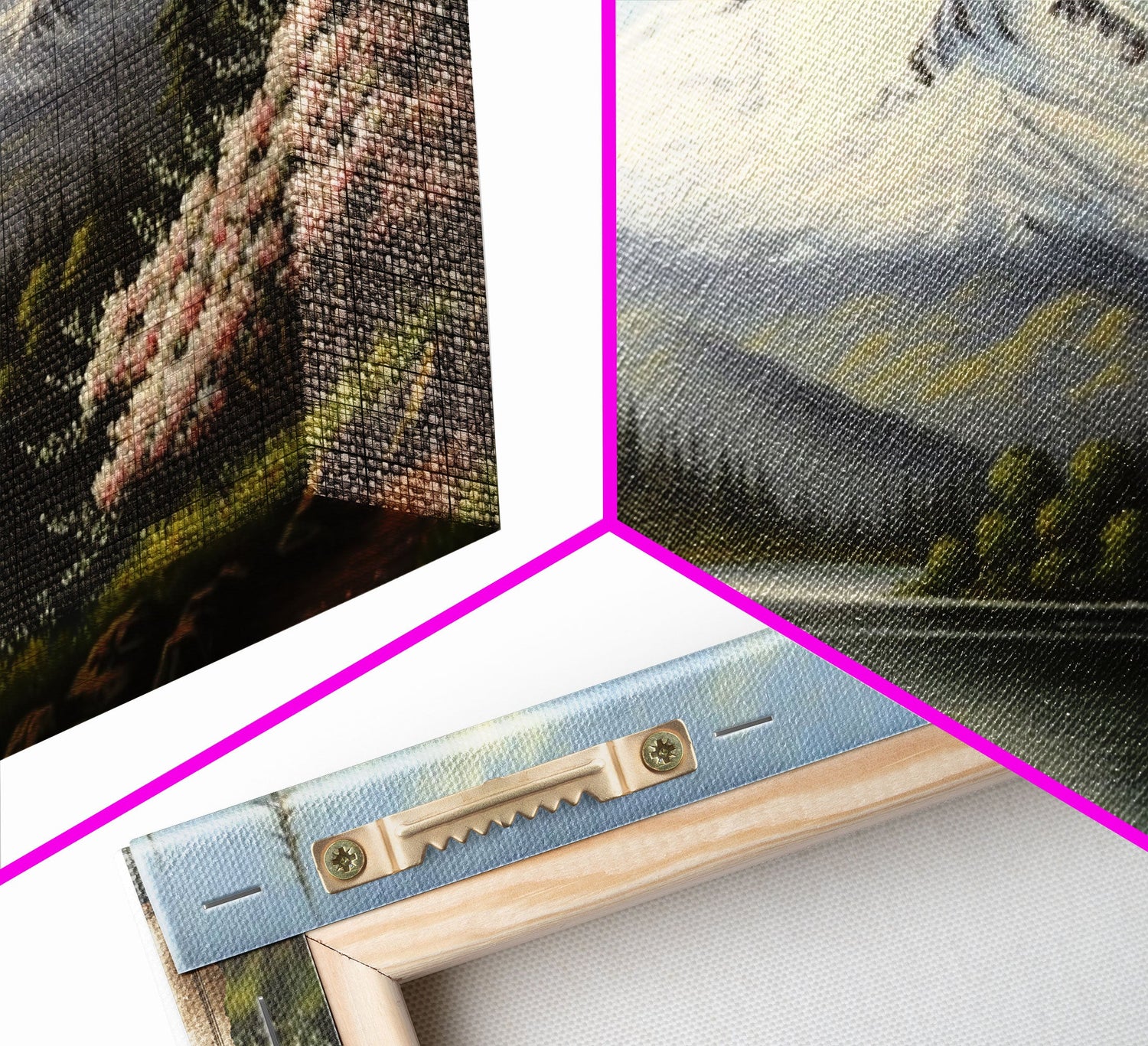 Mount Hood, Oregon Mountains, Travel Poster Wall Art, Framed Canvas Print, American Mountains, Mountain Landscape Painting