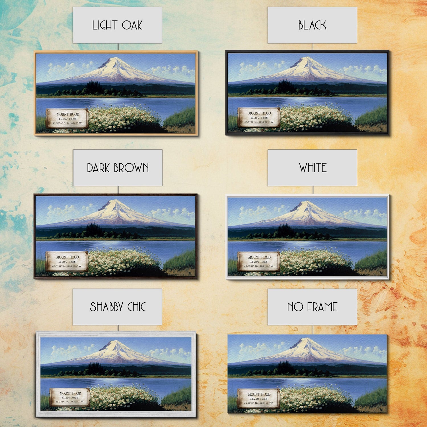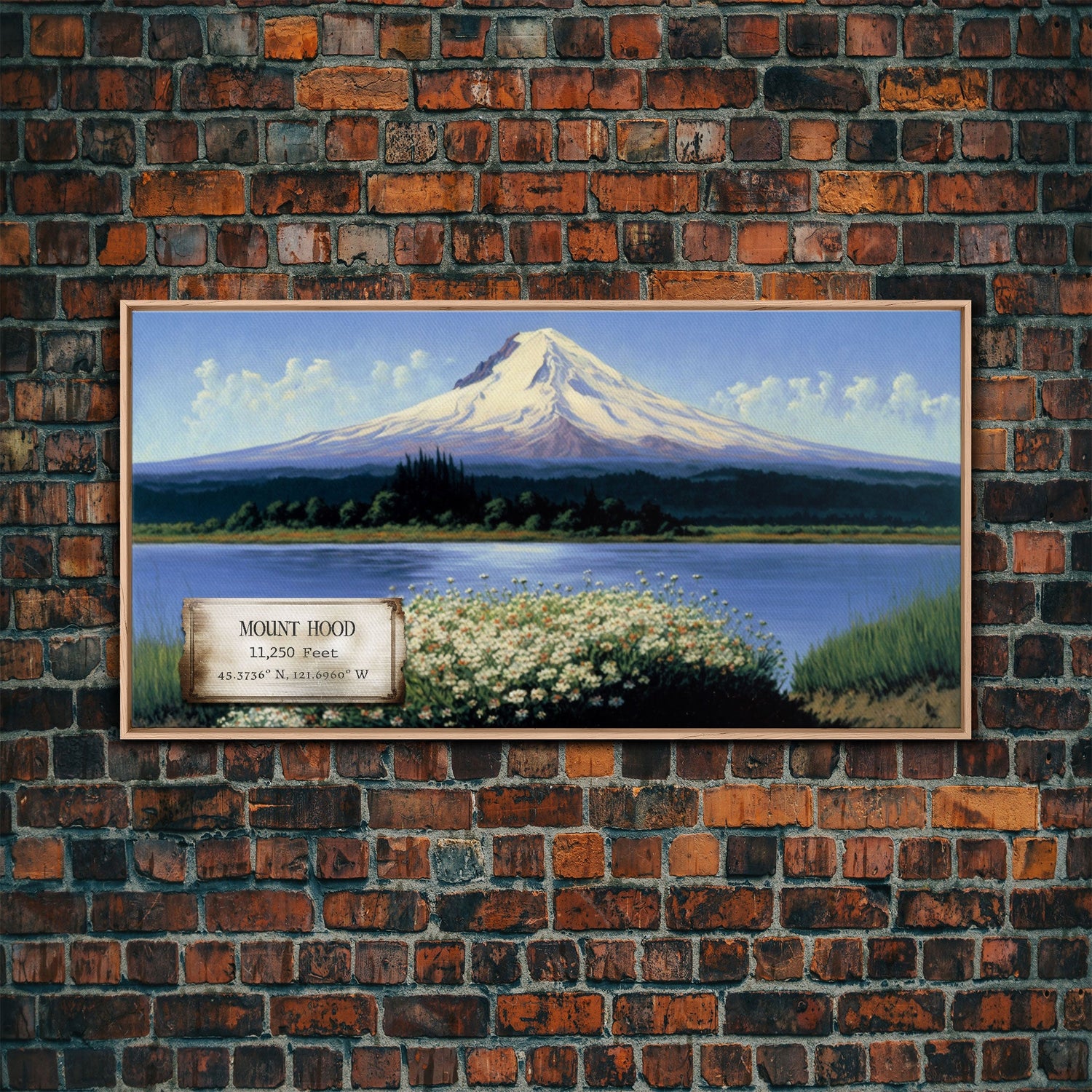 Mount Hood, Oregon Mountains, Travel Poster Wall Art, Framed Canvas Print, American Mountains, Mountain Landscape Painting