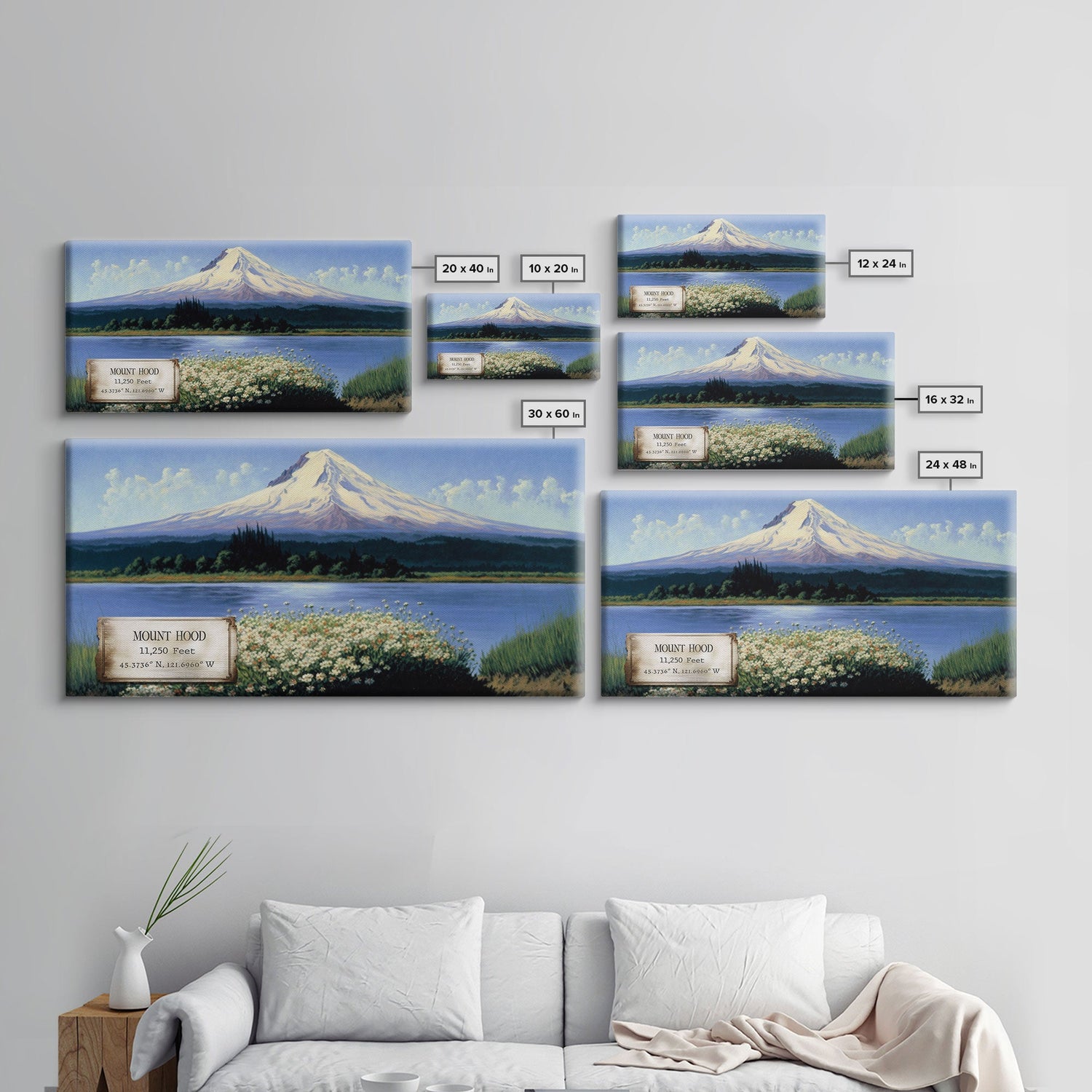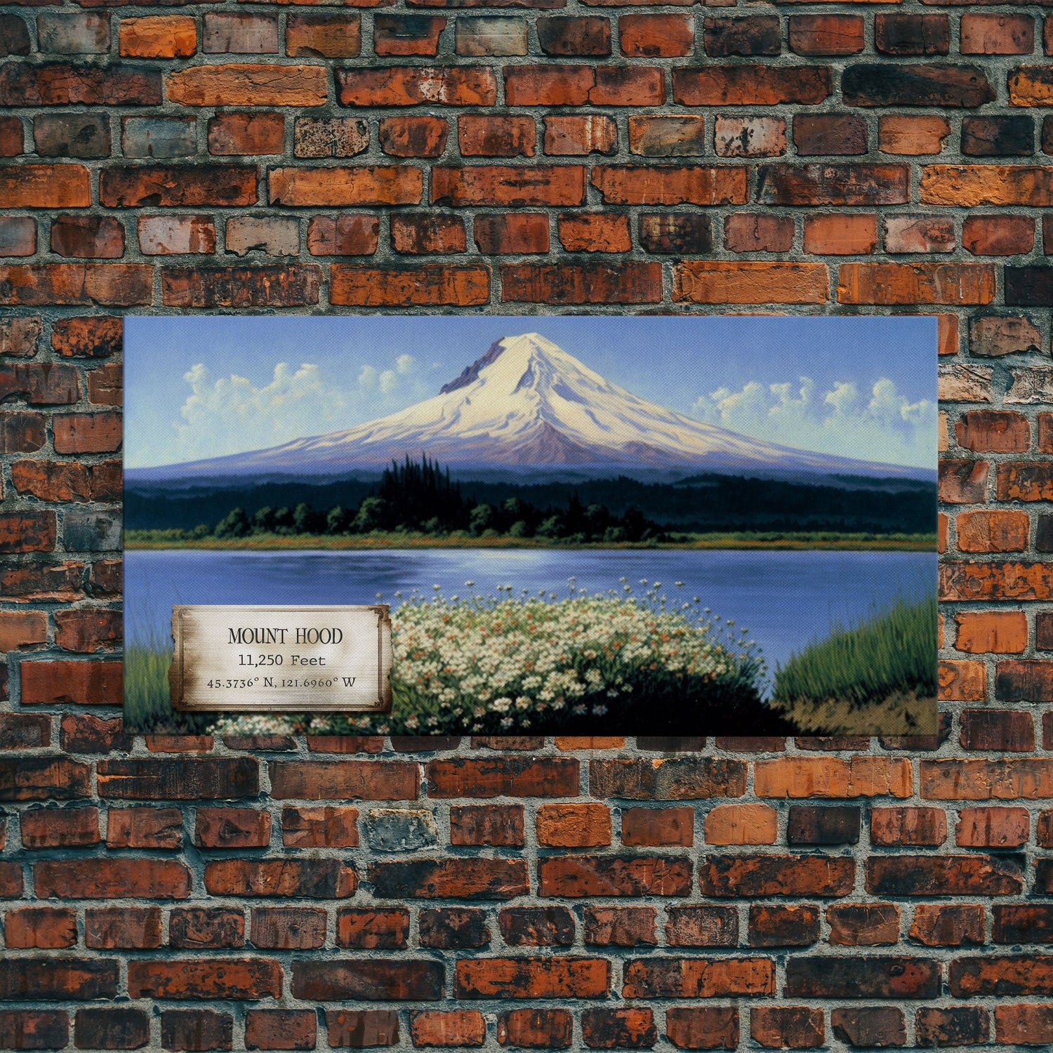 Mount Hood, Oregon Mountains, Travel Poster Wall Art, Framed Canvas Print, American Mountains, Mountain Landscape Painting - 10x20 Inches / No Frame - Stretched Canvas Only is backordered and will ship as soon as it is back in stock.