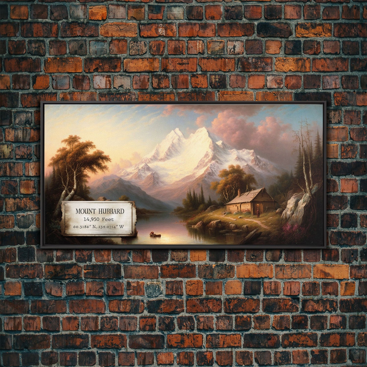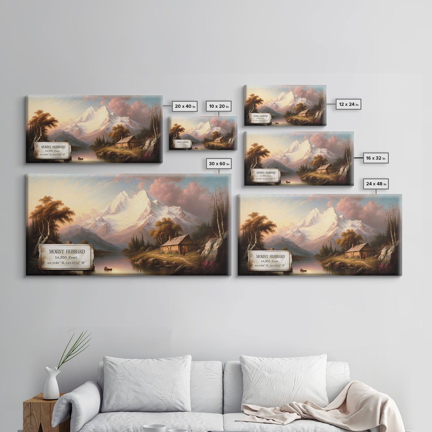 Mount Hubbard, Yukon Mountains of Alaska, Travel Poster Wall Art, Framed Canvas Print, American Mountains, Mountain Landscape Painting - 10x20 Inches / No Frame - Stretched Canvas Only is backordered and will ship as soon as it is back in stock.