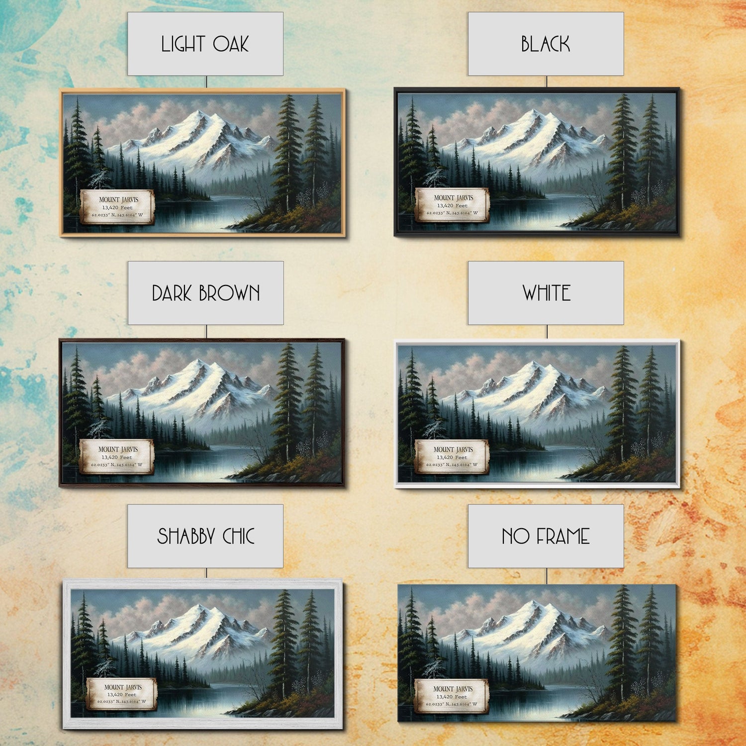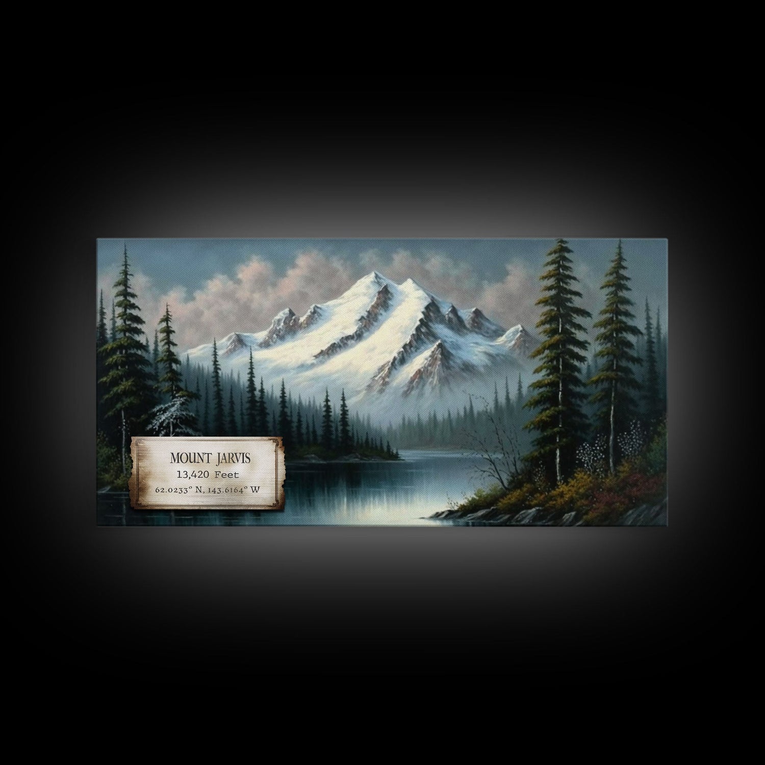 Mount Jarvis, Mountains of Alaska, Travel Poster Wall Art, Framed Canvas Print, American Mountains, Mountain Landscape Painting - 10x20 Inches / No Frame - Stretched Canvas Only is backordered and will ship as soon as it is back in stock.