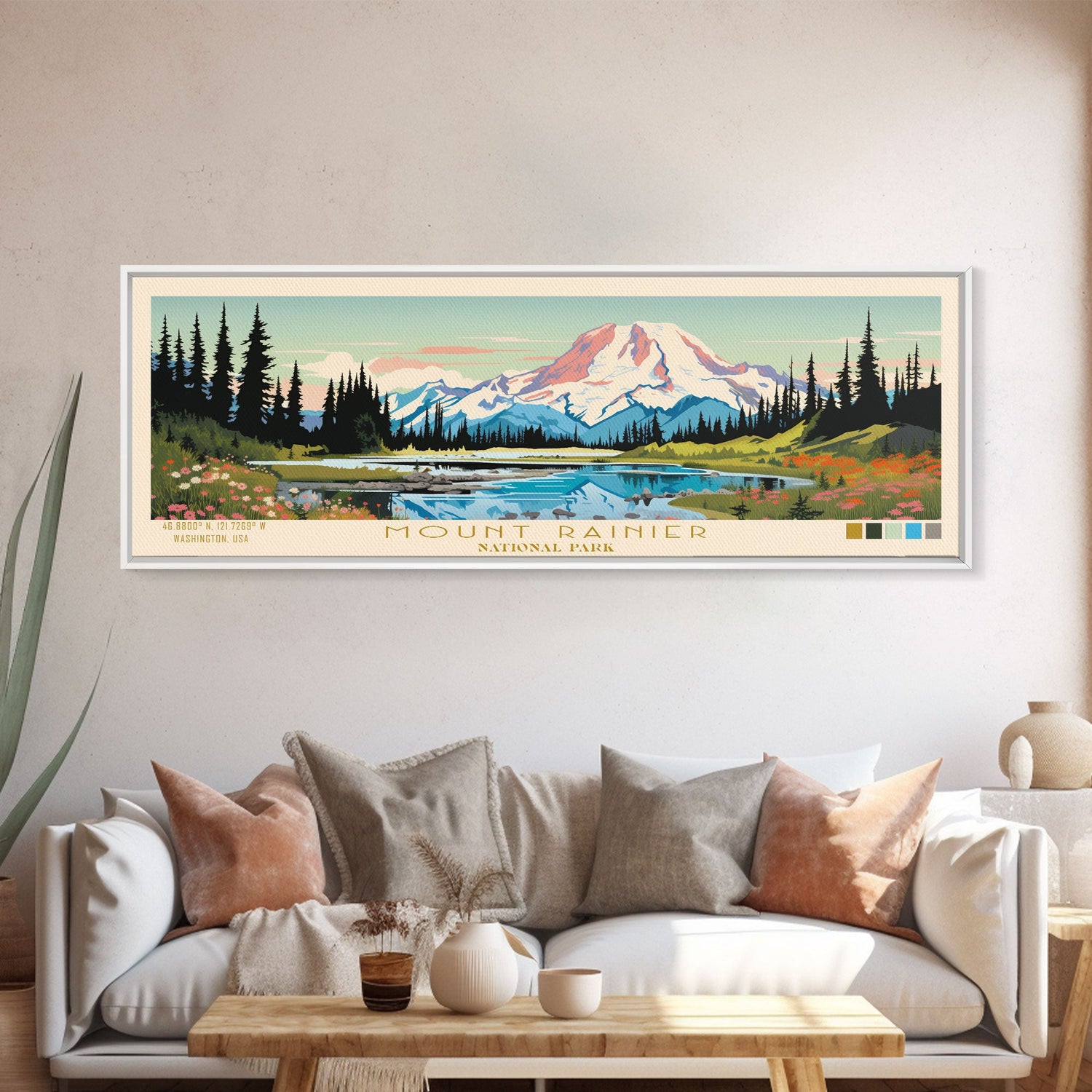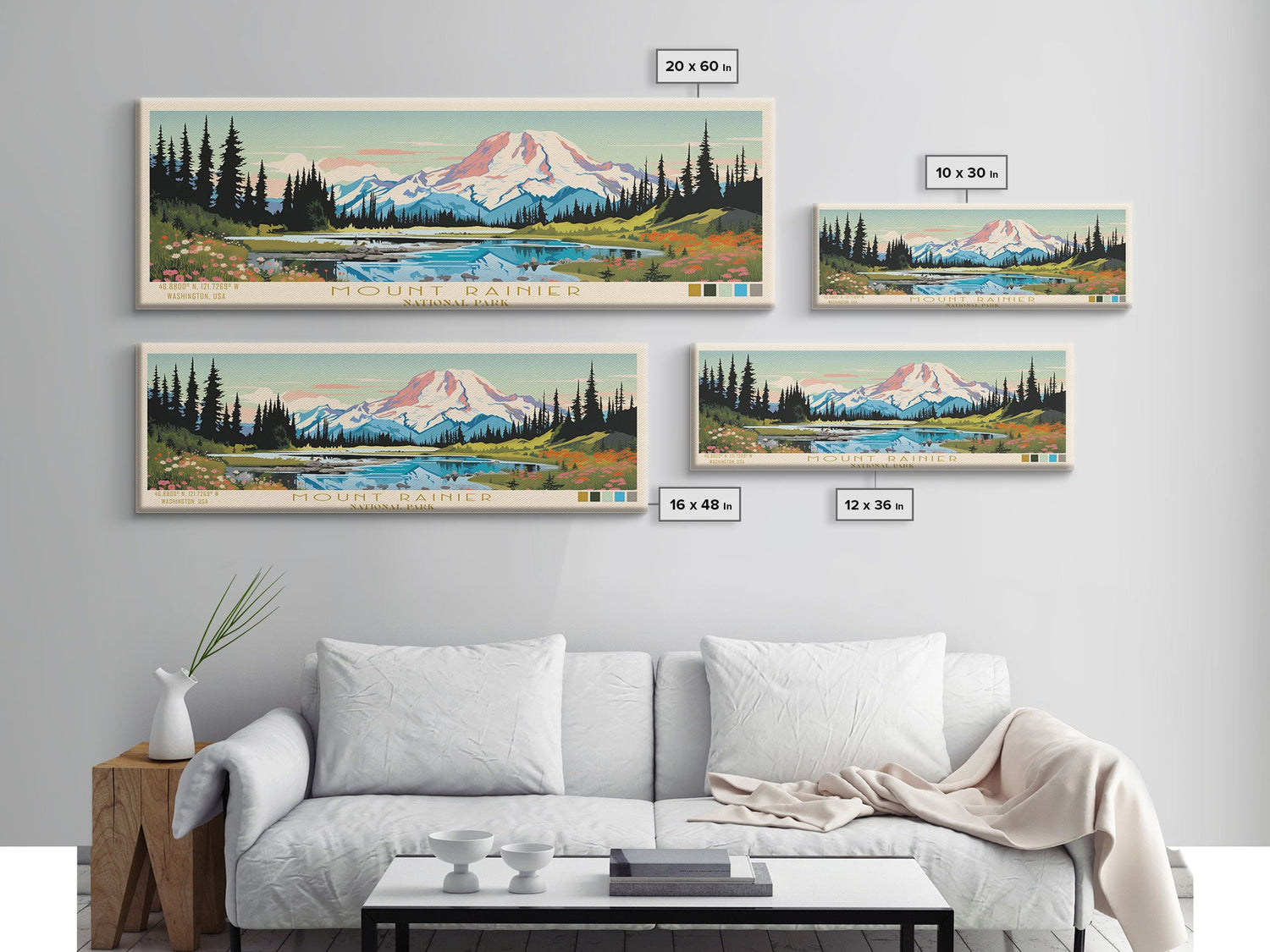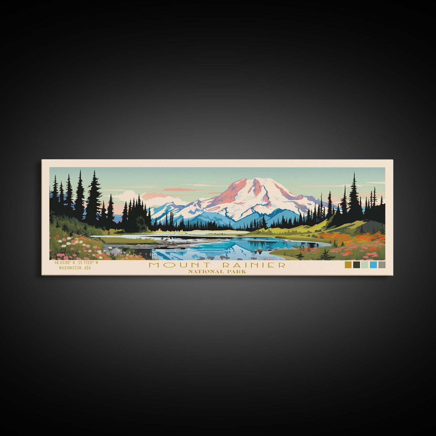 Mount Rainier National Park Panoramic Washington Travel Art, National Park Print, Minimalist Travel Art, Midcentury Modern Style Landscape