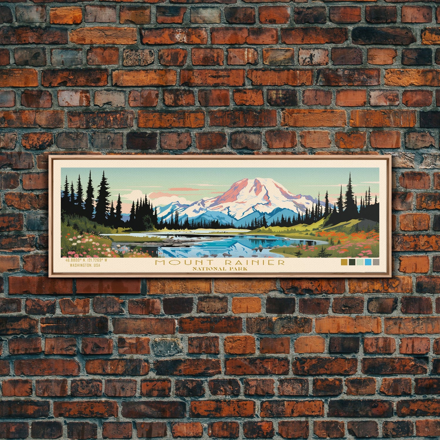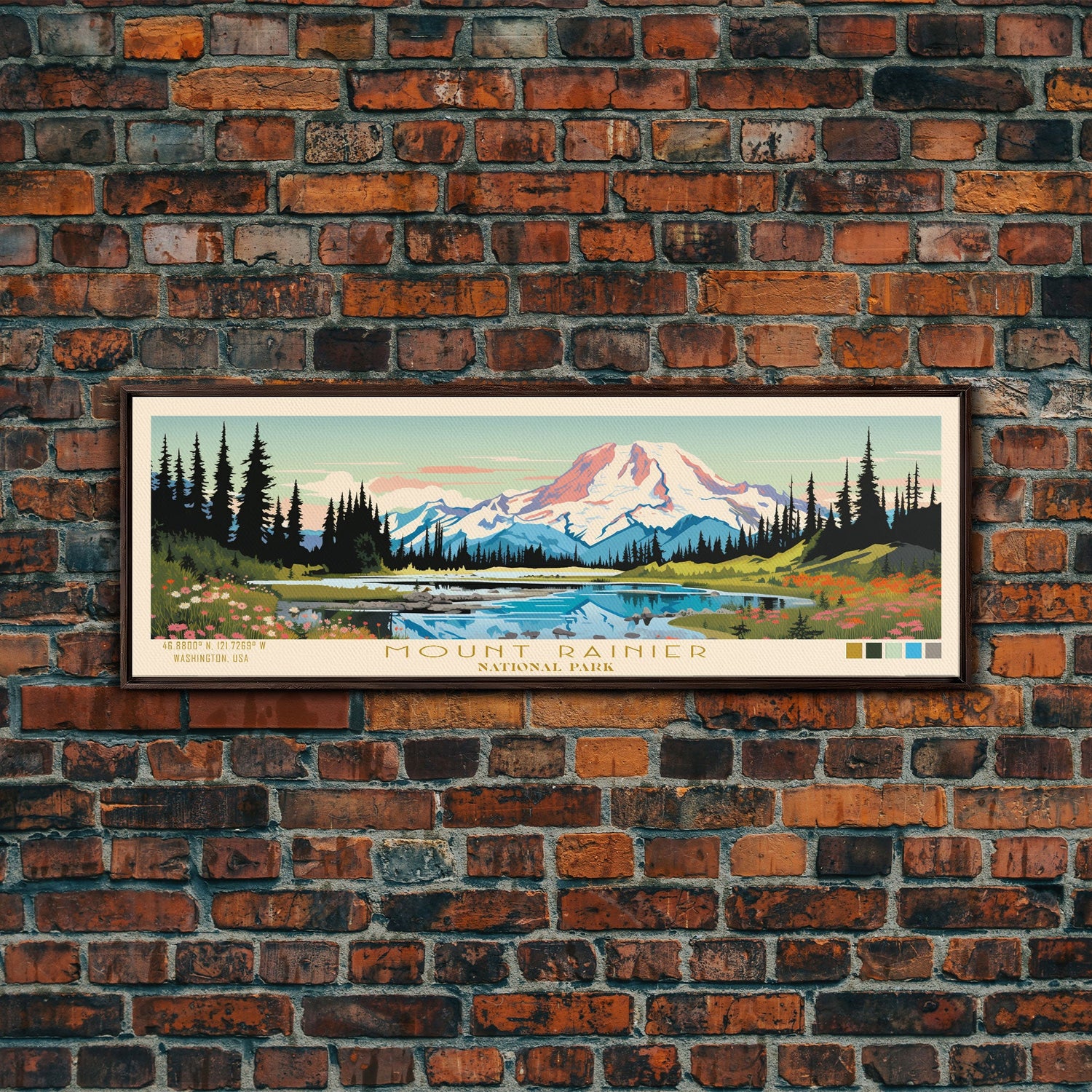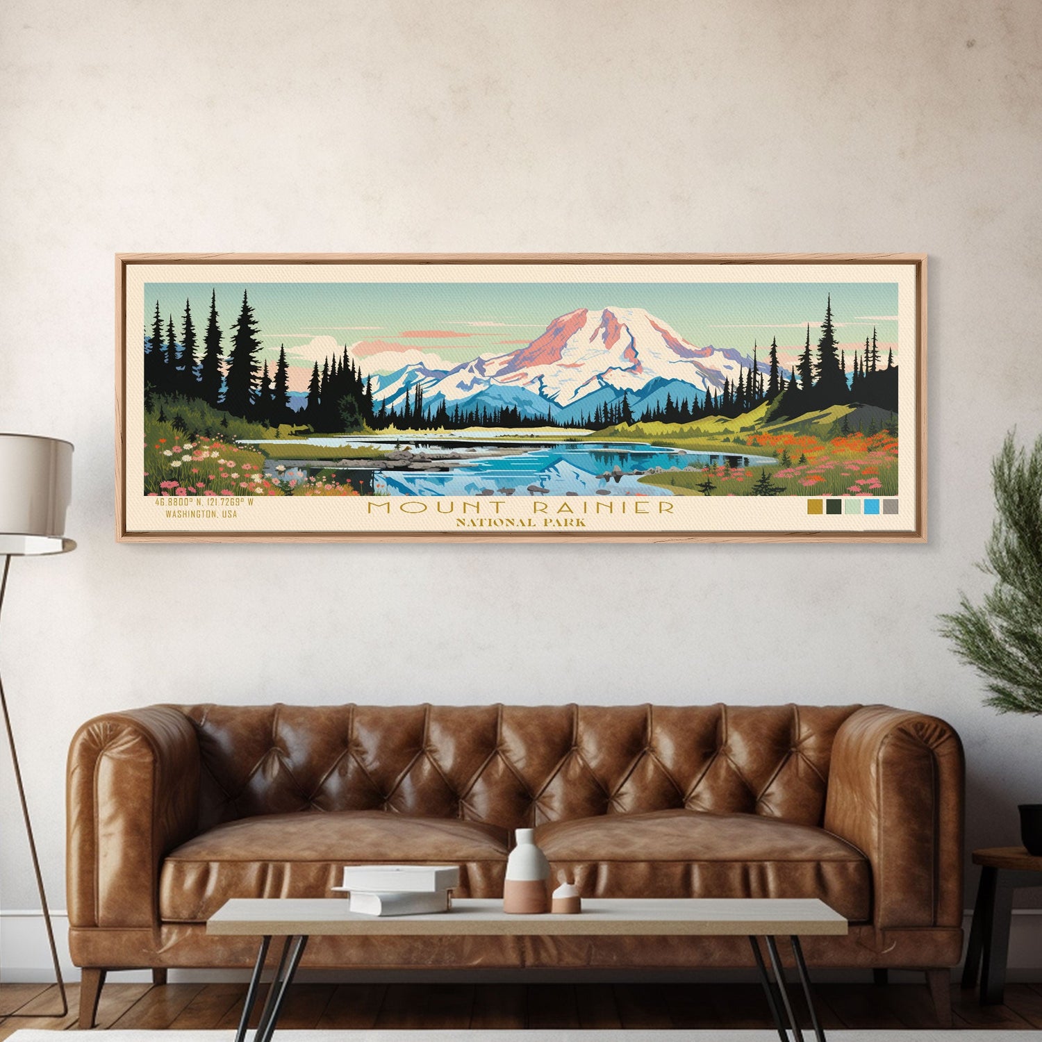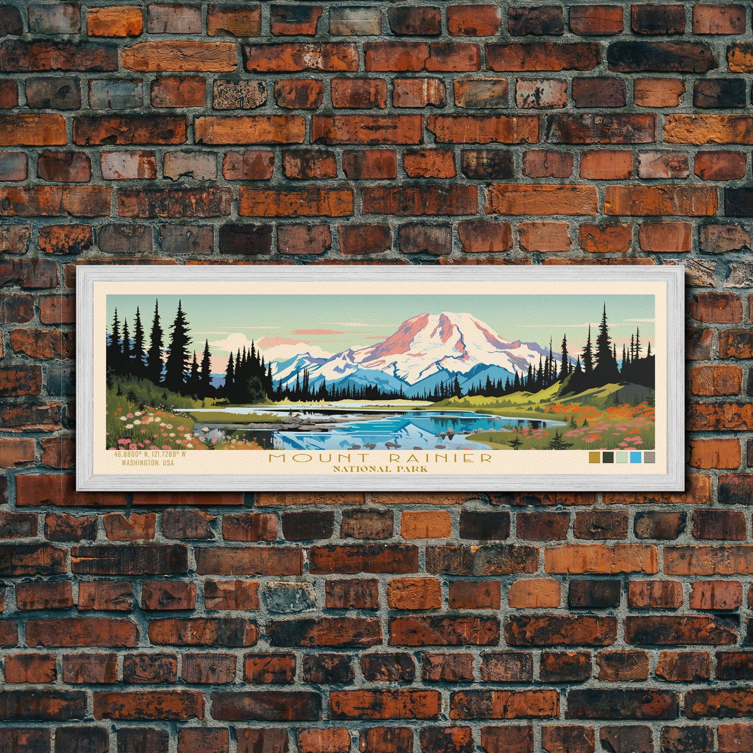 Mount Rainier National Park Panoramic Washington Travel Art, National Park Print, Minimalist Travel Art, Midcentury Modern Style Landscape