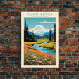 Mount Rainier National Park, Washington Travel Art, National Park Print, Minimalist Travel Art, Midcentury Modern Retro Style Landscape