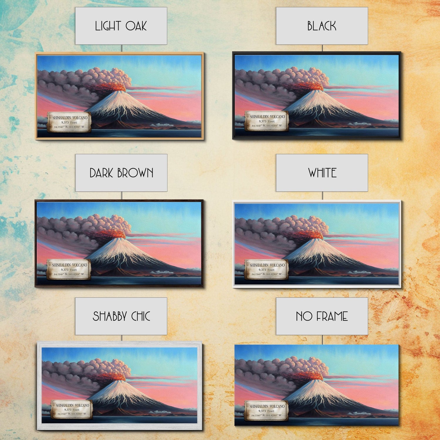 Mount Shishaldin, Travel Poster Wall Art, Framed Canvas Print, American Mountains, Mountain Landscape Painting, Mountains of Alaska - 10x20 Inches / No Frame - Stretched Canvas Only is backordered and will ship as soon as it is back in stock.