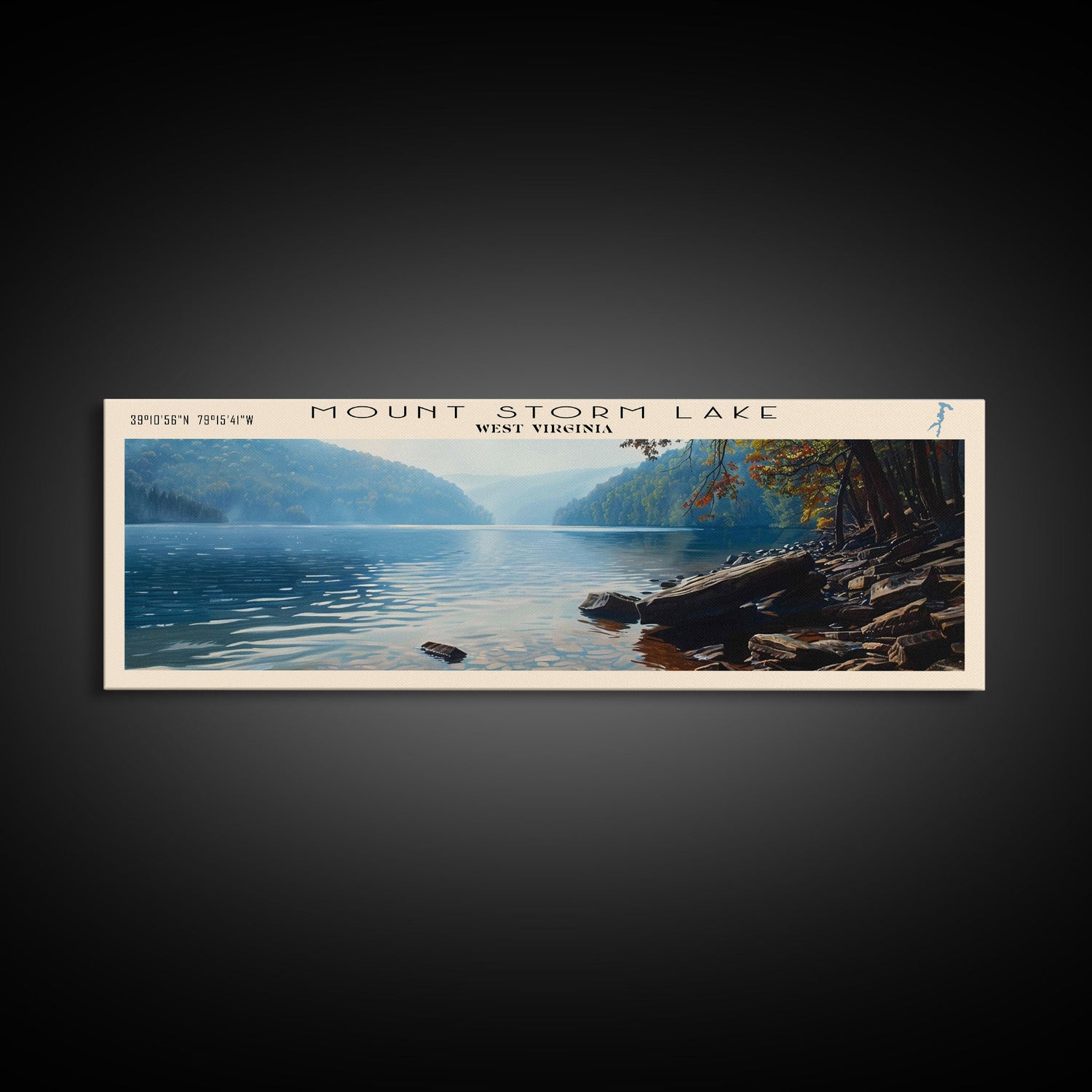 Mount Storm Lake West Virginia Framed Canvas Print, Lake House Decor, Panoramic Wall Art, Travel Poster, Landscape Painting, Contemporary Art - 10x30 Inches / No Frame - Stretched Canvas Only is backordered and will ship as soon as it is back in stock.