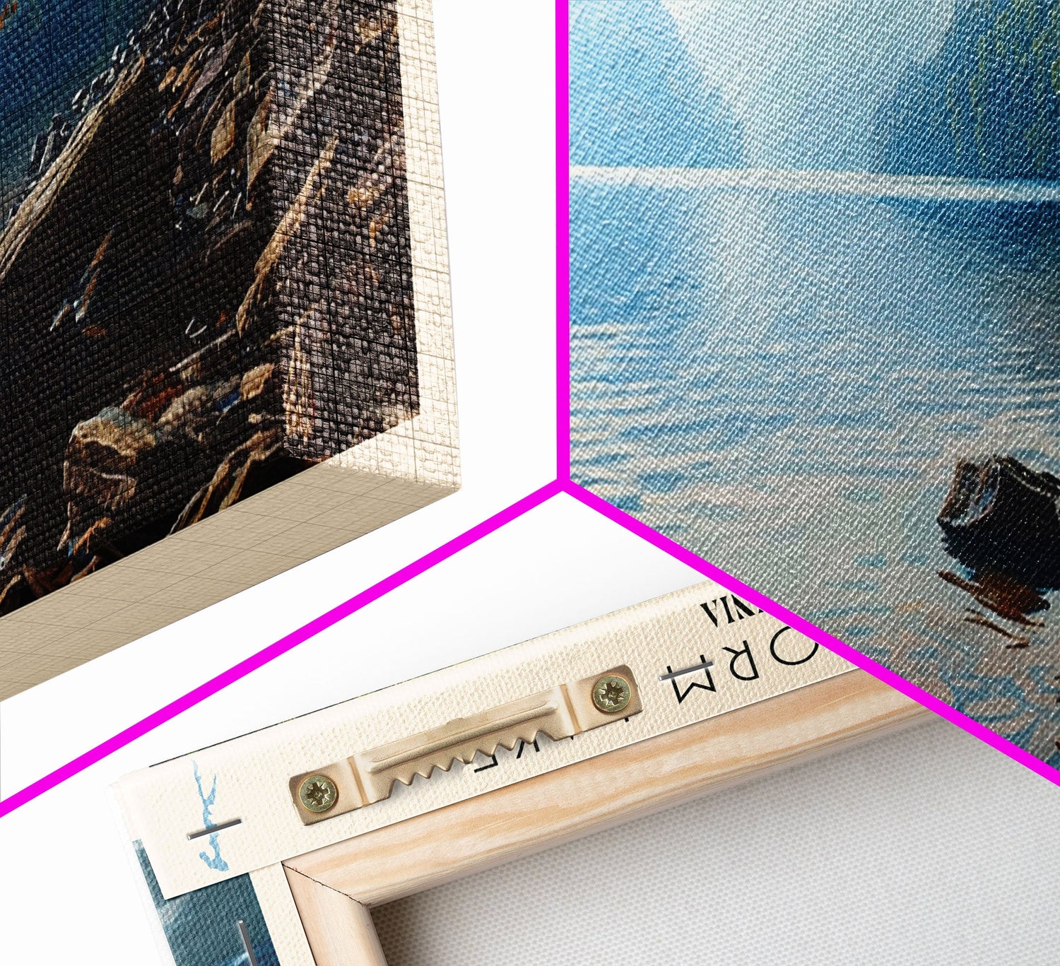 Mount Storm Lake West Virginia Framed Canvas Print, Lake House Decor, Panoramic Wall Art, Travel Poster, Landscape Painting, Contemporary Art