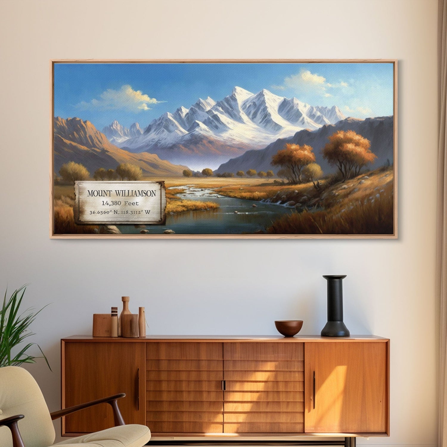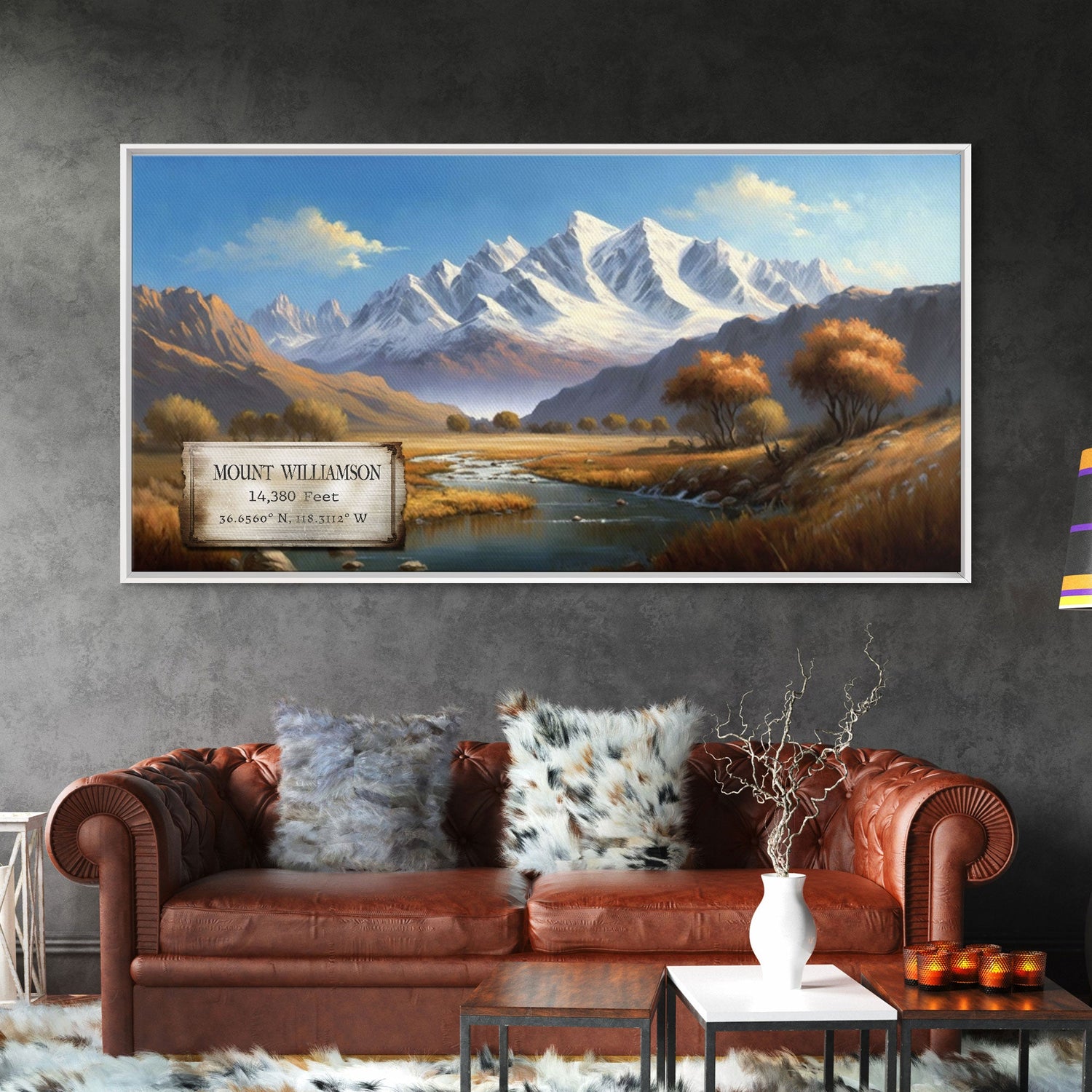 Mount Williamson, Mountains of California, Travel Poster Wall Art, Framed Canvas Print, American Mountains, Mountain Landscape Painting