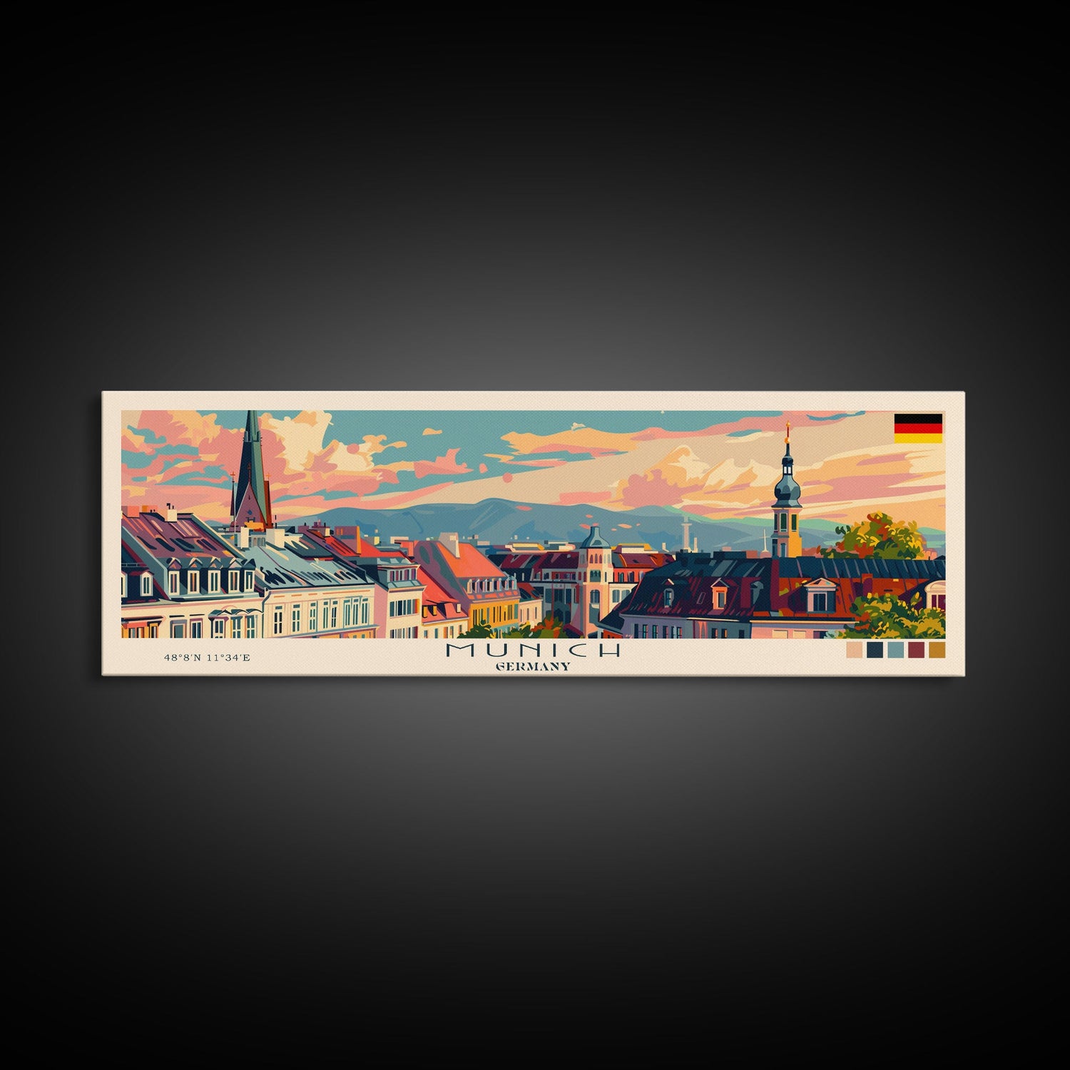 Munich Germany Wall Art, Panoramic Travel Poster, Panoramic Framed Canvas Print, City Wall Art, Wall Hanging Home Decor, Travel Art