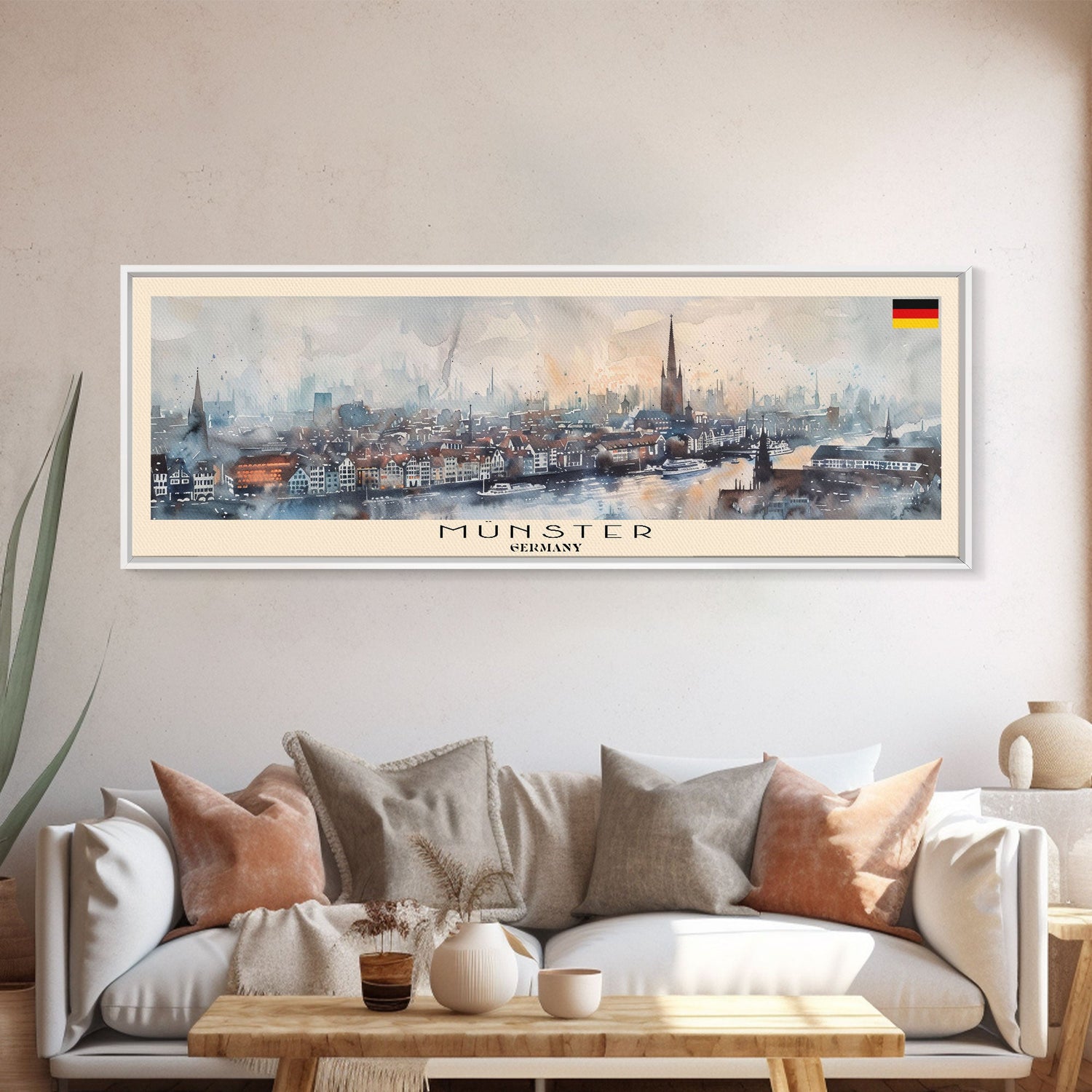 Munster Germany Travel Print Wall Art, Panoramic City Art, Travel Art, Wall Decor, Vacation Gift, Framed Canvas Print Or Metal Art