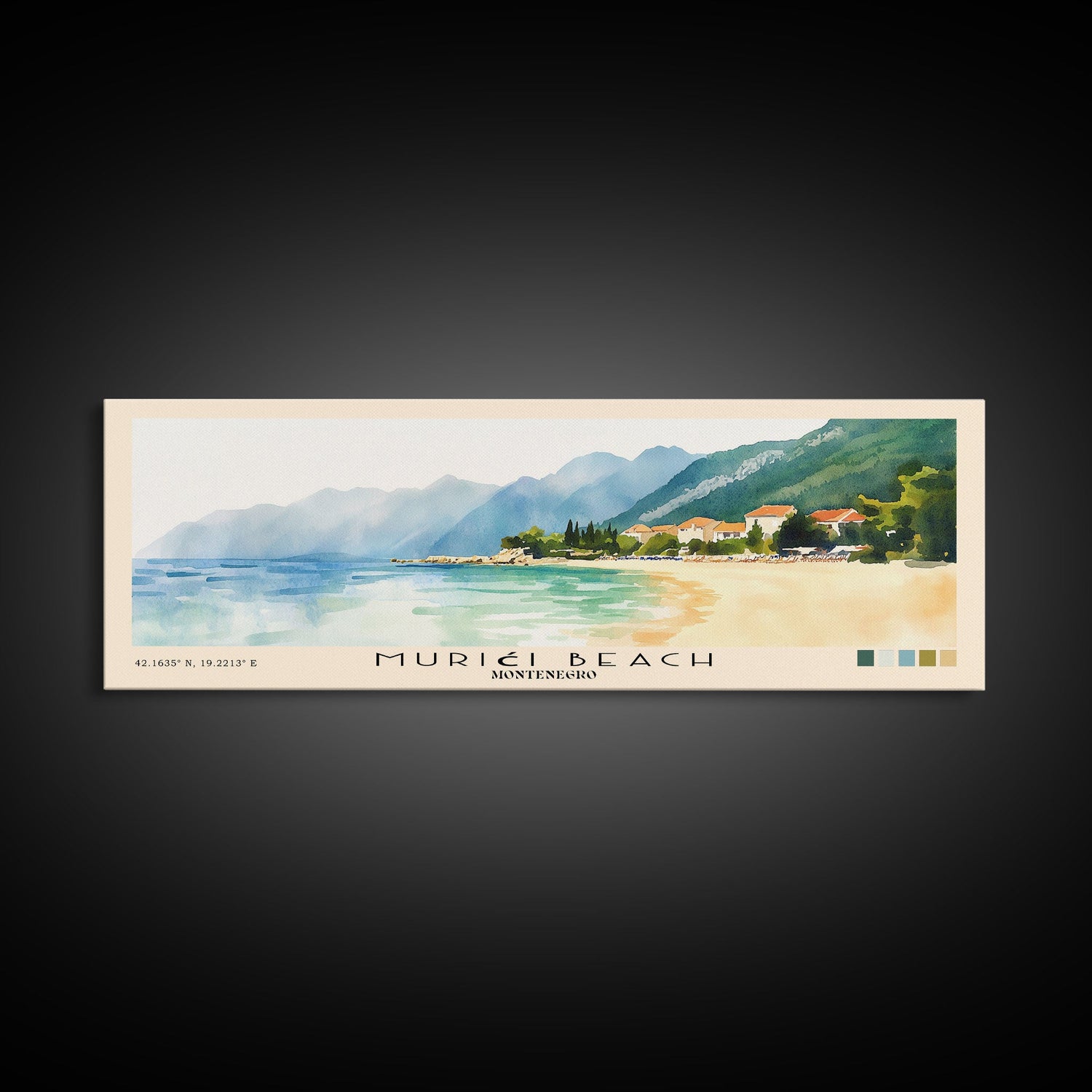 Murići Beach, Montenegro Watercolor Beach Print, Vacation Gift, Montenegro Wall Art, Beach Painting, Beach Decor, Beach Painting - 10x30 Inches / No Frame - Stretched Canvas Only is backordered and will ship as soon as it is back in stock.