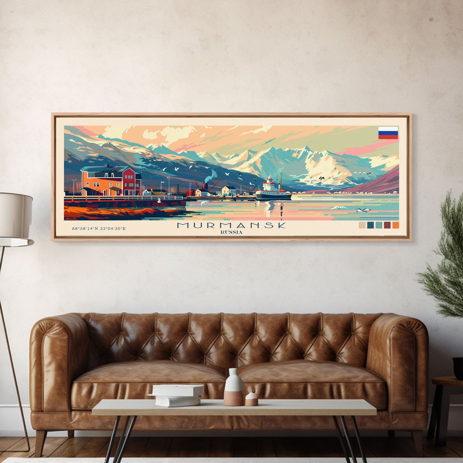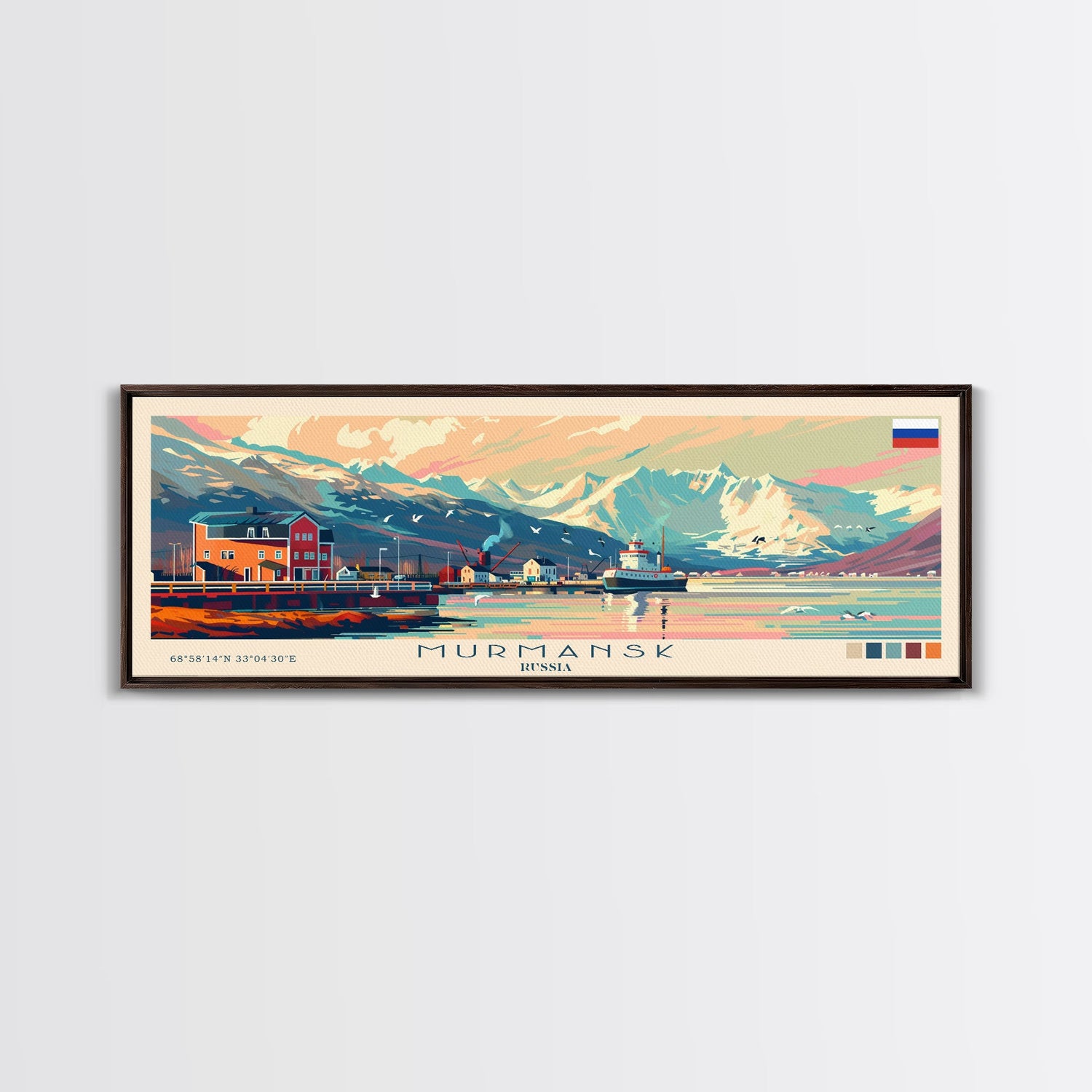 Murmansk Russia Panoramic Travel Poster, Framed Canvas Print or Metal Wall Art, Travel Art, Home Decor, Panoramic Painting, Midcentury Art