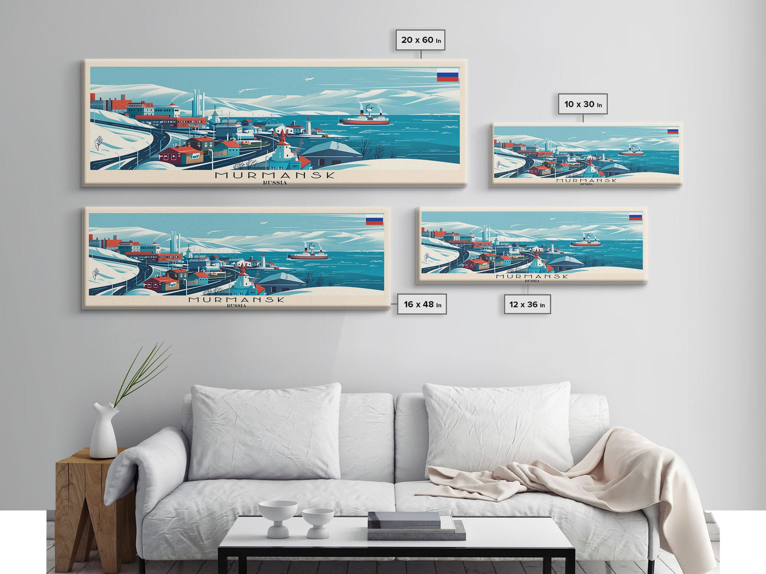Murmansk Russia Panoramic Travel Poster, Framed Canvas Print or Metal Wall Art, Travel Art, Home Decor, Panoramic Painting, Midcentury Art
