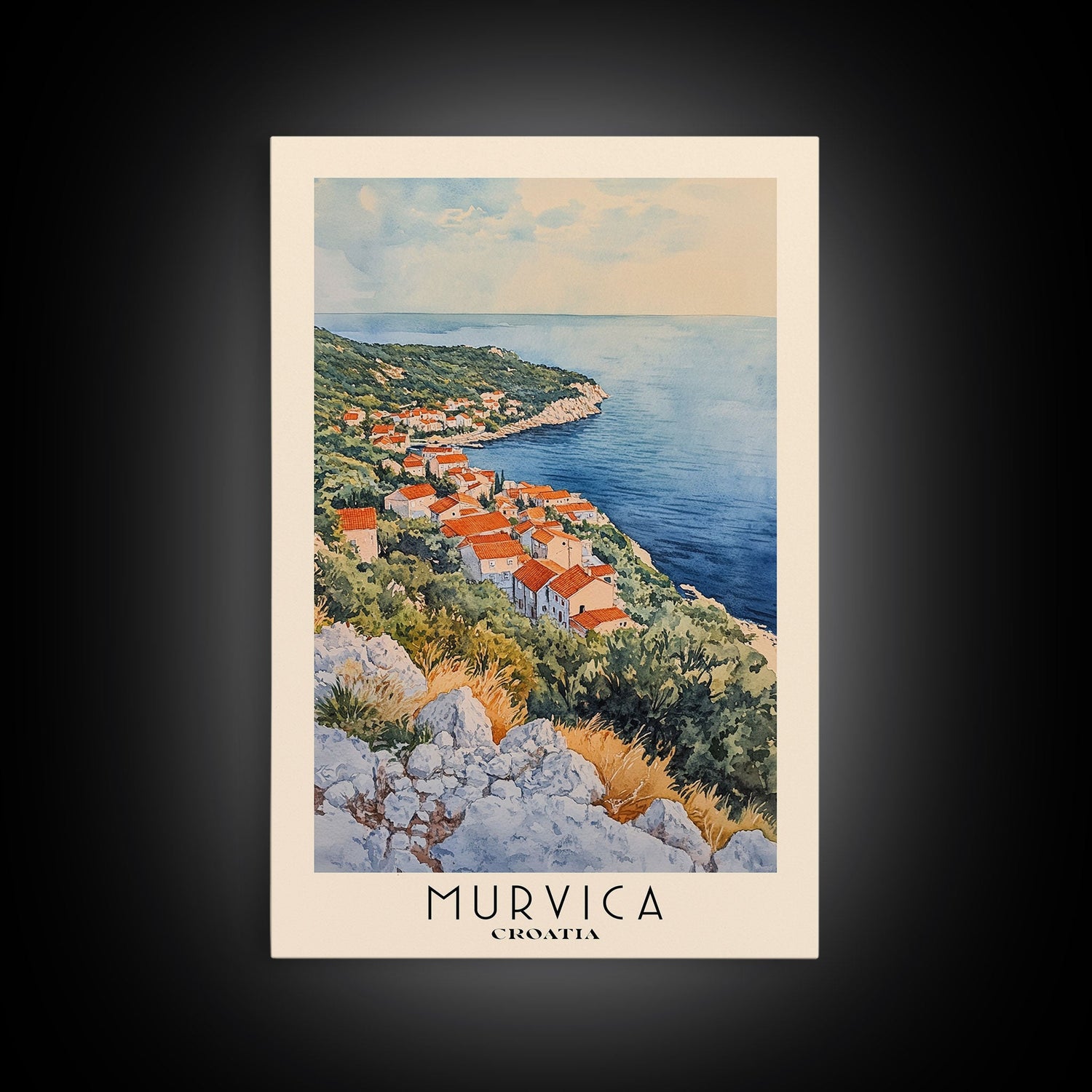 Murvica, Croatia Watercolor Print, Vacation Gift, Croatia Wall Art, Beach Painting, Beach Decor, Large Wall Art, Wood Frame Art - 8x12 Inches / No Frame - Stretched Canvas Only is backordered and will ship as soon as it is back in stock.