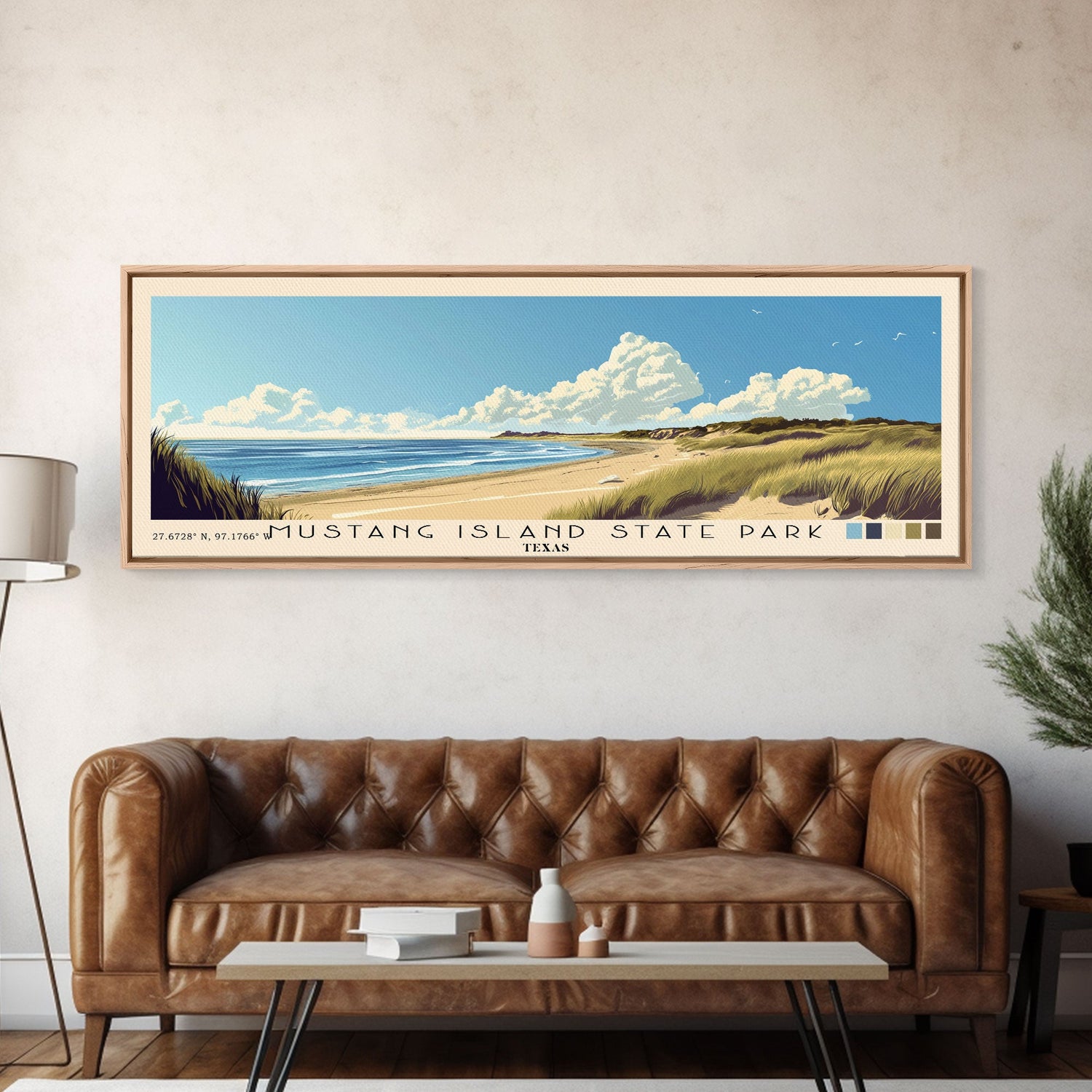 Mustang Island State Park, Texas Panoramic Print, Vacation Gift, Texas Wall Art, Beach Painting, Beach Decor, Large Wall Art, Wood Frame Art