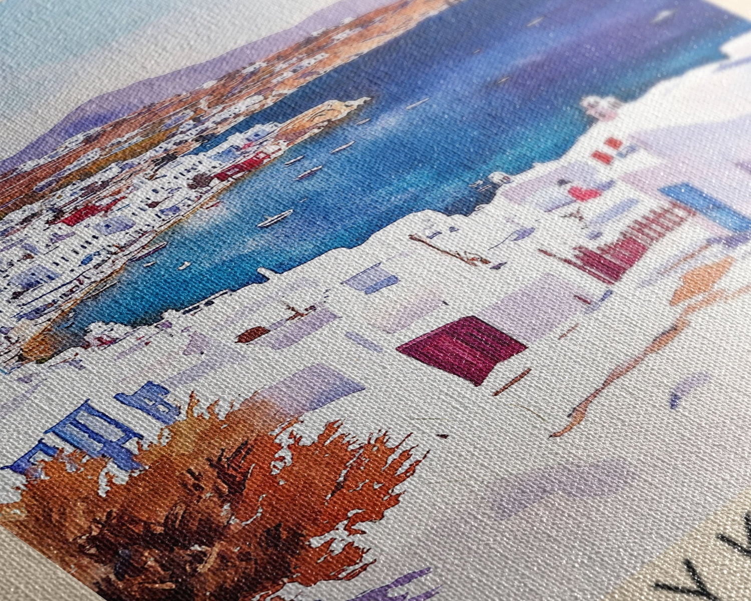Mykonos, Greece Watercolor Beach Print, Vacation Gift, Greece Wall Art, Beach Painting, Beach Decor, Beach Painting - 8x12 Inches / No Frame - Stretched Canvas Only is backordered and will ship as soon as it is back in stock.