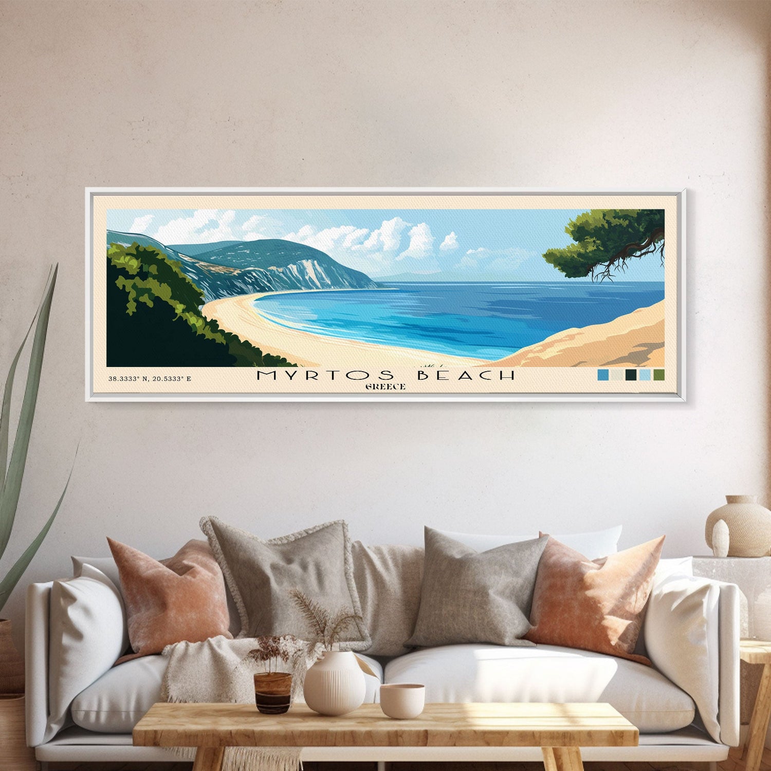 Myrtos Beach, Greece Panoramic Print, Vacation Gift, Greece Wall Art, Beach Painting, Beach Decor, Beach Or Lakehouse Art - 10x30 Inches / No Frame - Stretched Canvas Only is backordered and will ship as soon as it is back in stock.