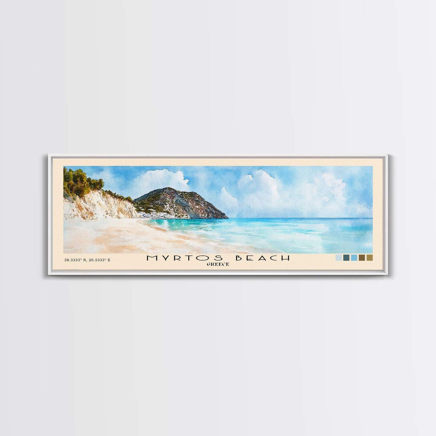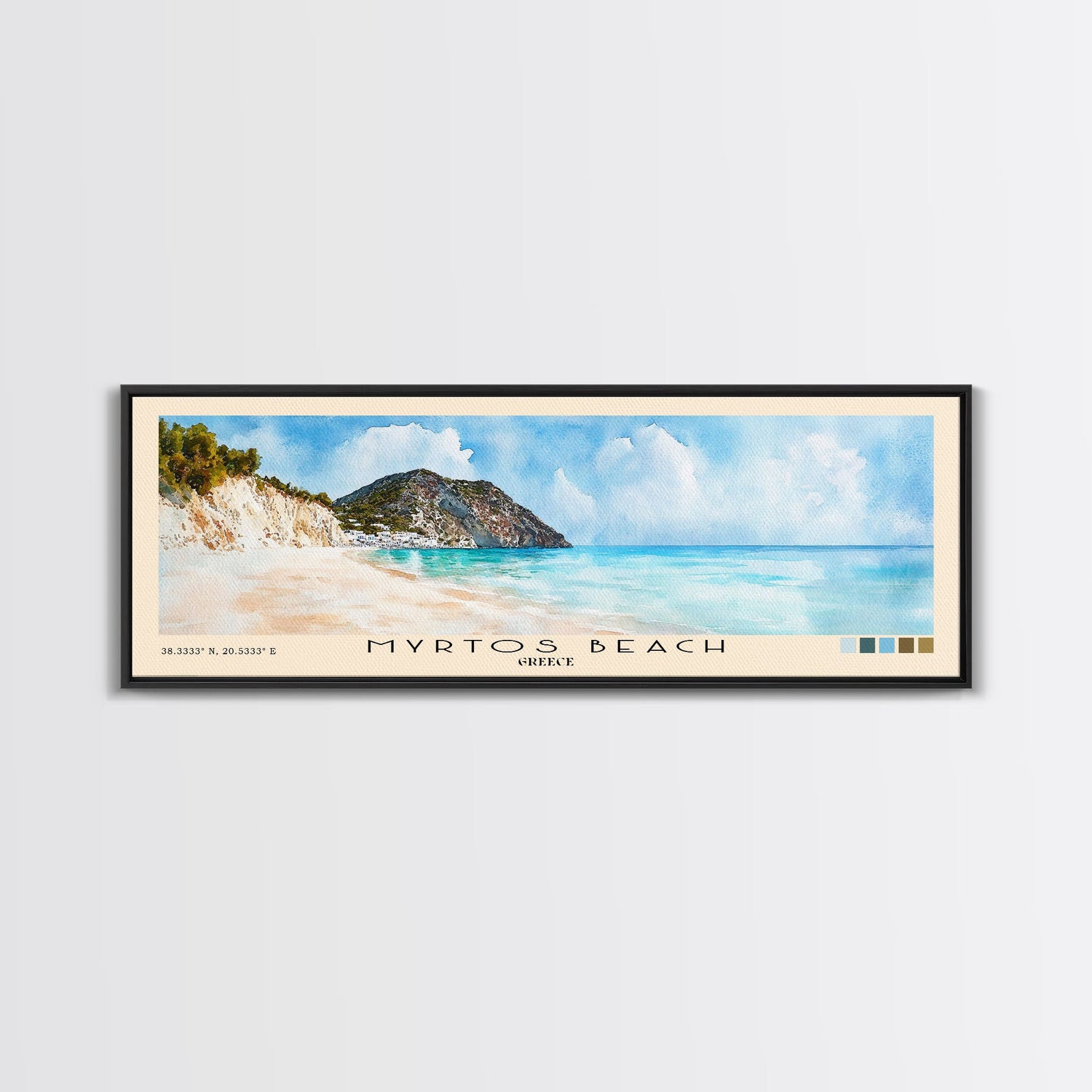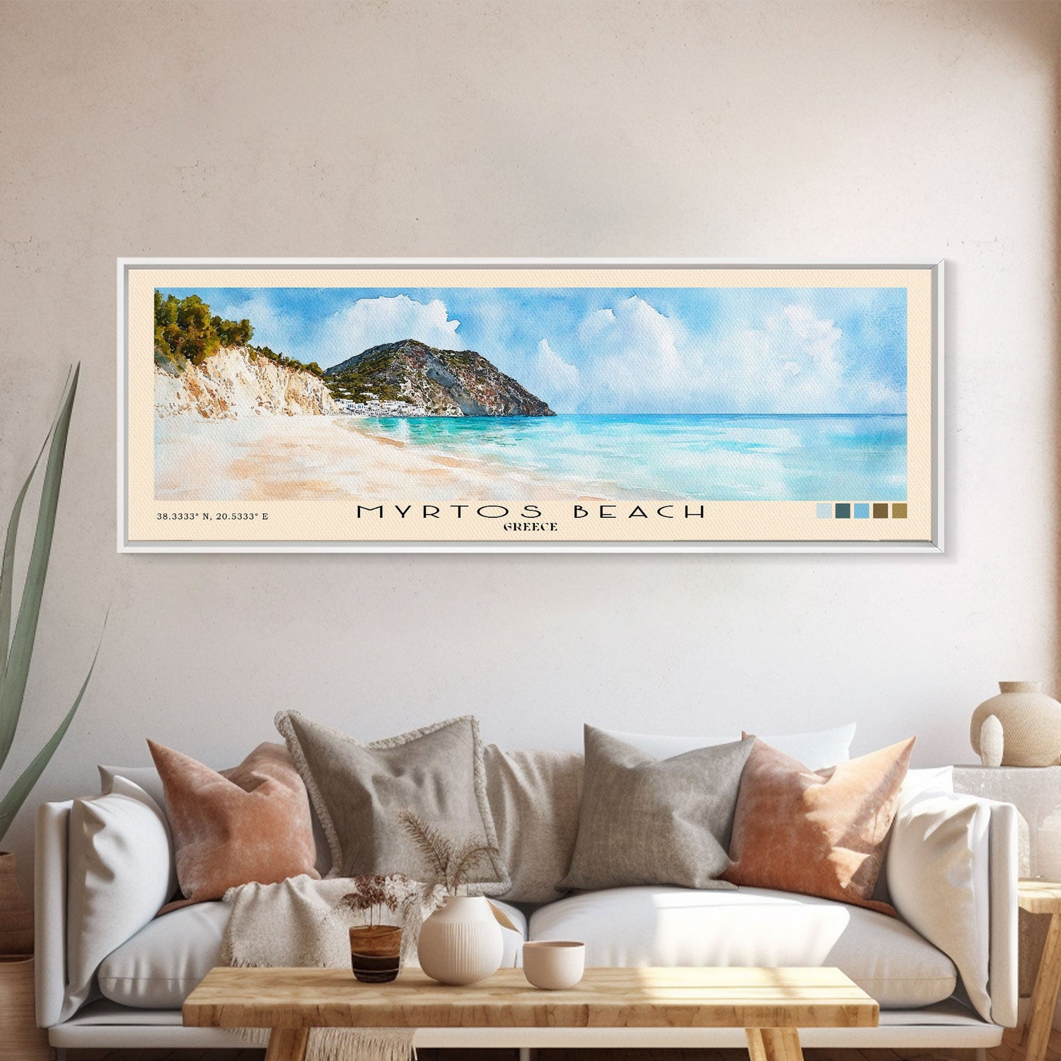 Myrtos Beach, Greece Watercolor Print, Vacation Gift, Greece Wall Art, Beach Painting, Beach Decor, Large Wall Art, Wood Frame Art - 10x30 Inches / No Frame - Stretched Canvas Only is backordered and will ship as soon as it is back in stock.