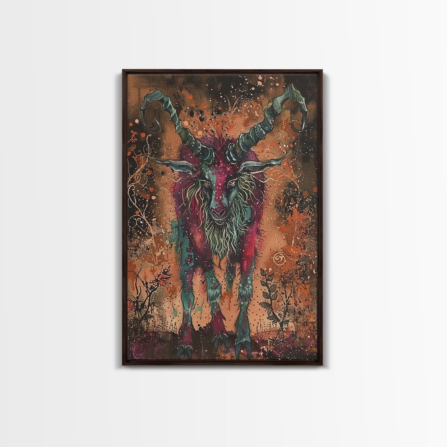 Mysterious Goat Demon Framed Canvas Print, Halloween Art, Unique Wall Art, Spooky Home Decor, Scary Art, Eerie Living Room Decor