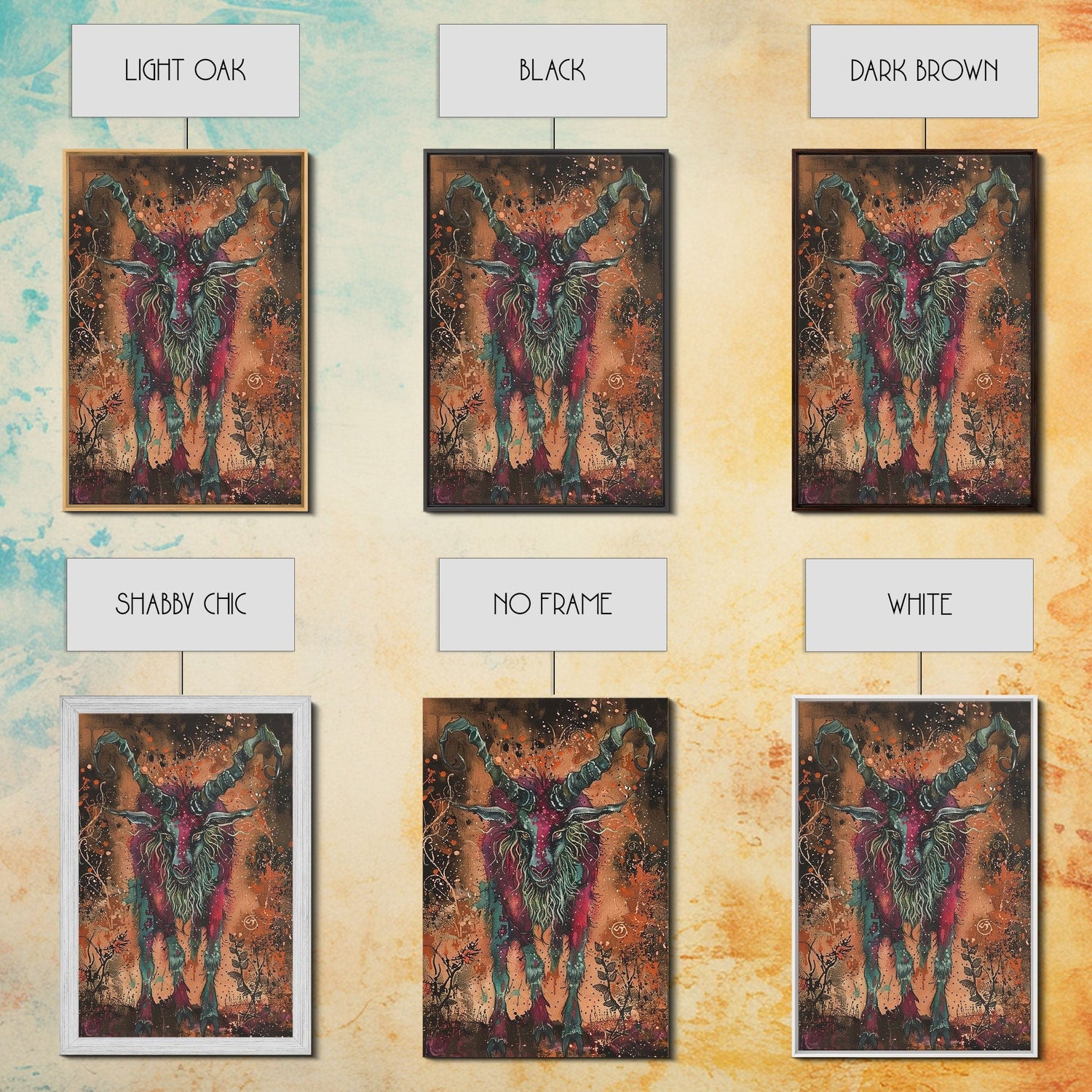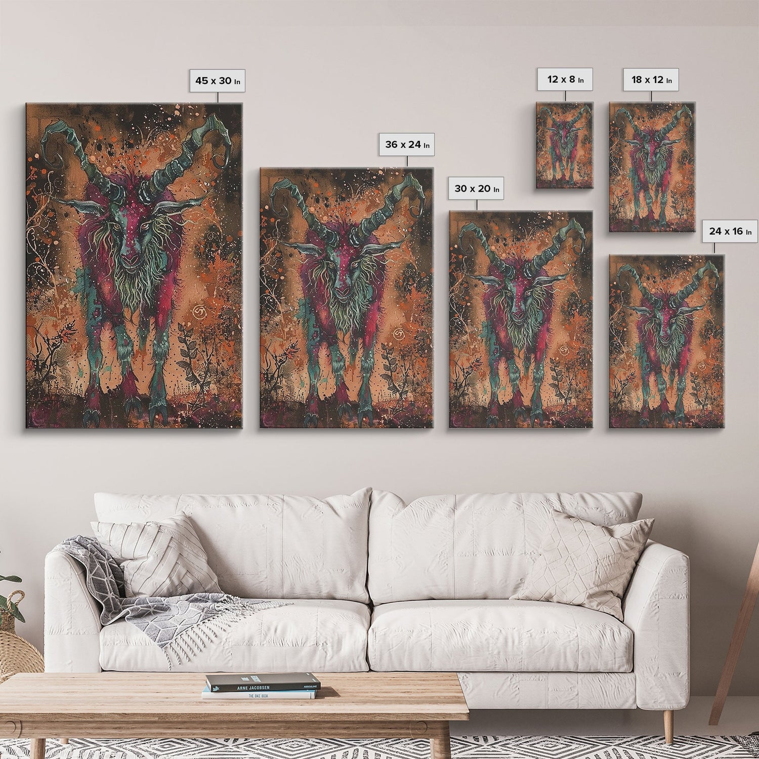 Mysterious Goat Demon Framed Canvas Print, Halloween Art, Unique Wall Art, Spooky Home Decor, Scary Art, Eerie Living Room Decor - 8x12 Inches / No Frame - Stretched Canvas Only is backordered and will ship as soon as it is back in stock.