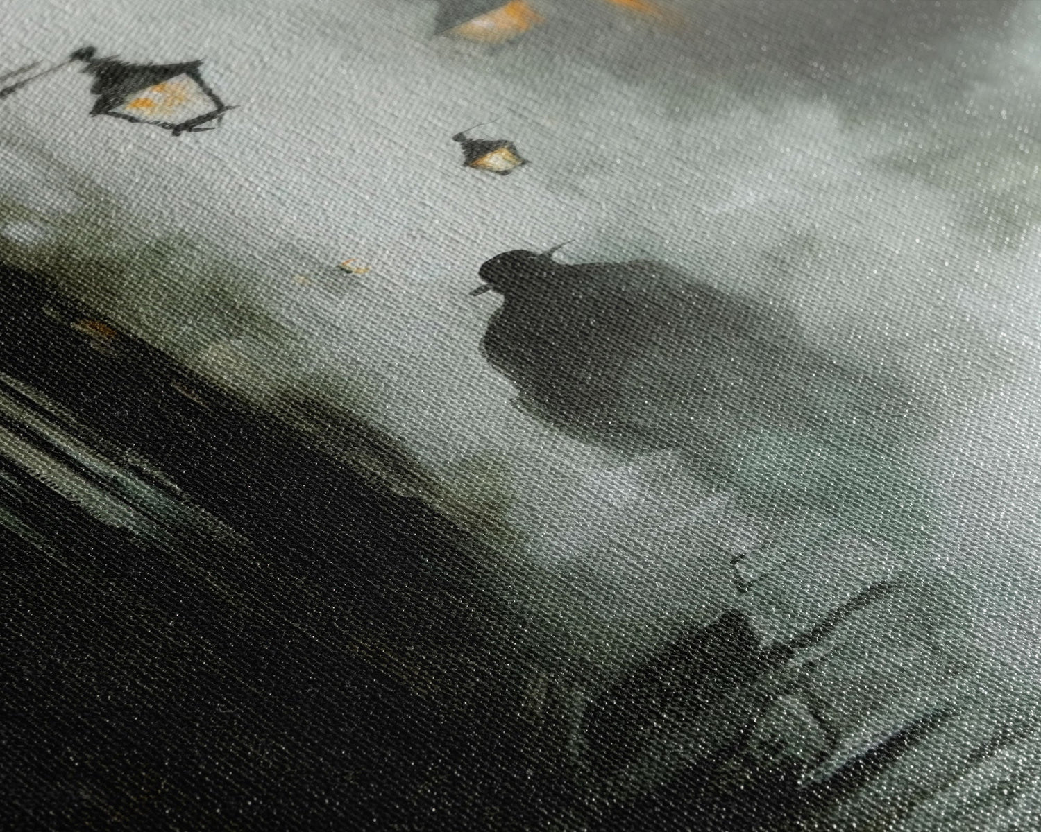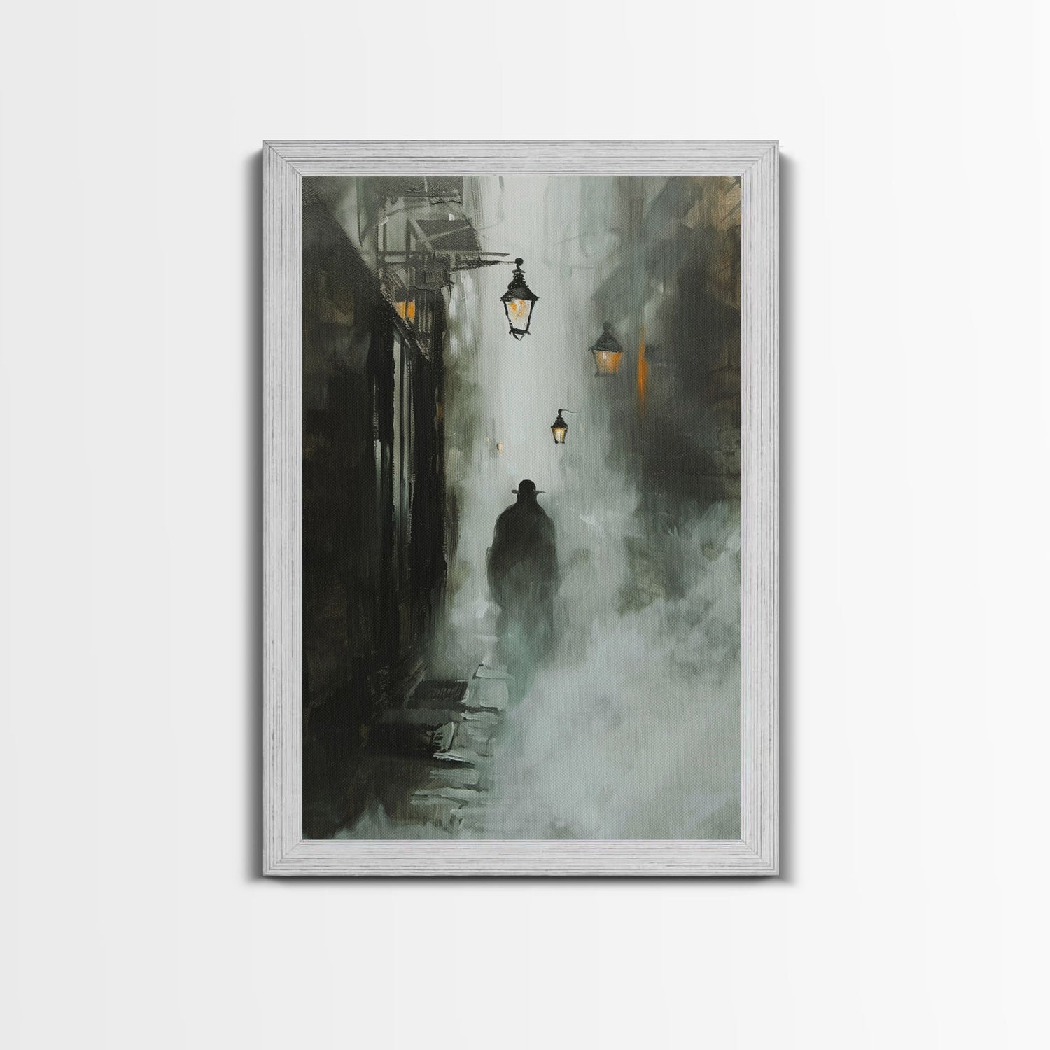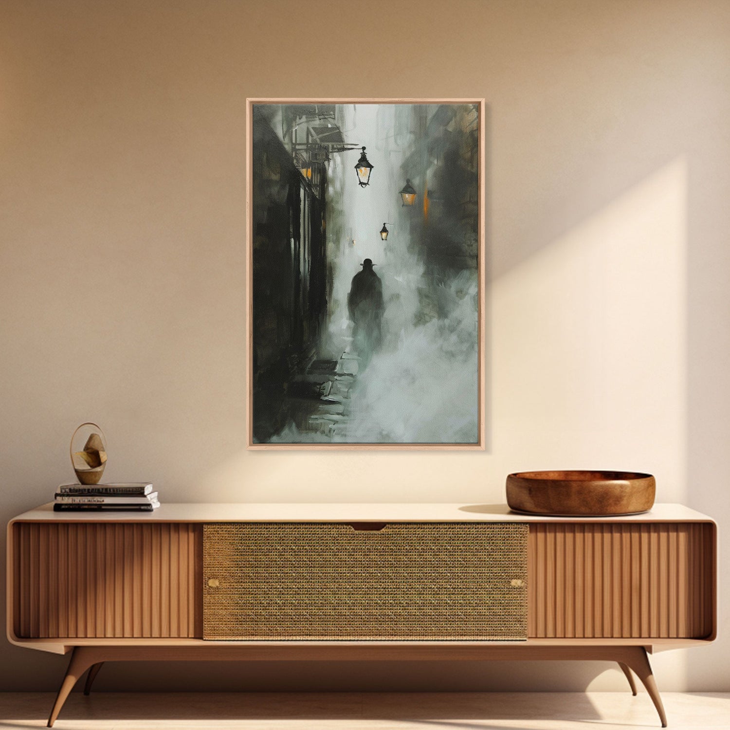 Mysterious Shadow in Fog, Halloween Art Print, Spooky Home Decor, Framed Canvas Print, Creepy Art, Halloween Wall Decor, Seasonal Wall Art