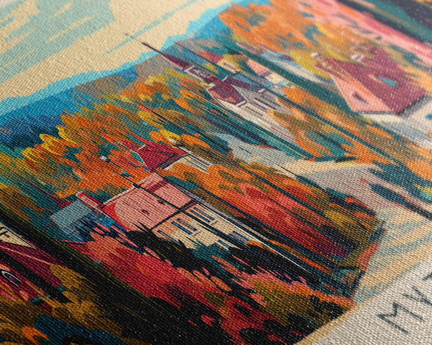 Most of our canvases are made in the USA, with the exception of canvases ordered with the light oak unstained frames, and any large canvases (24x48, 30x60, 16x48 and 20x60) ordered WITH a frame. These are temporarily made in and shipped from Europe, while we try to find a more consistent supplier in the USA.
