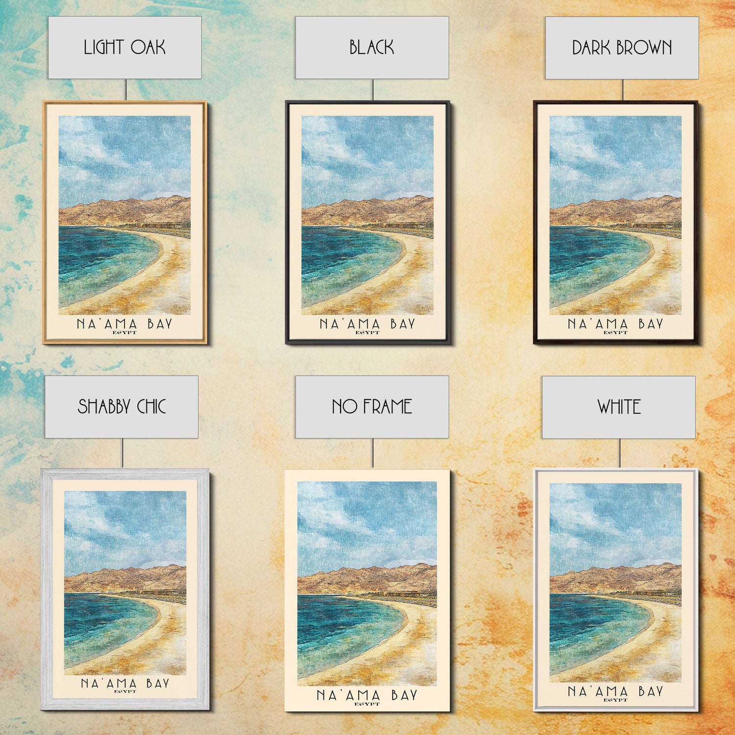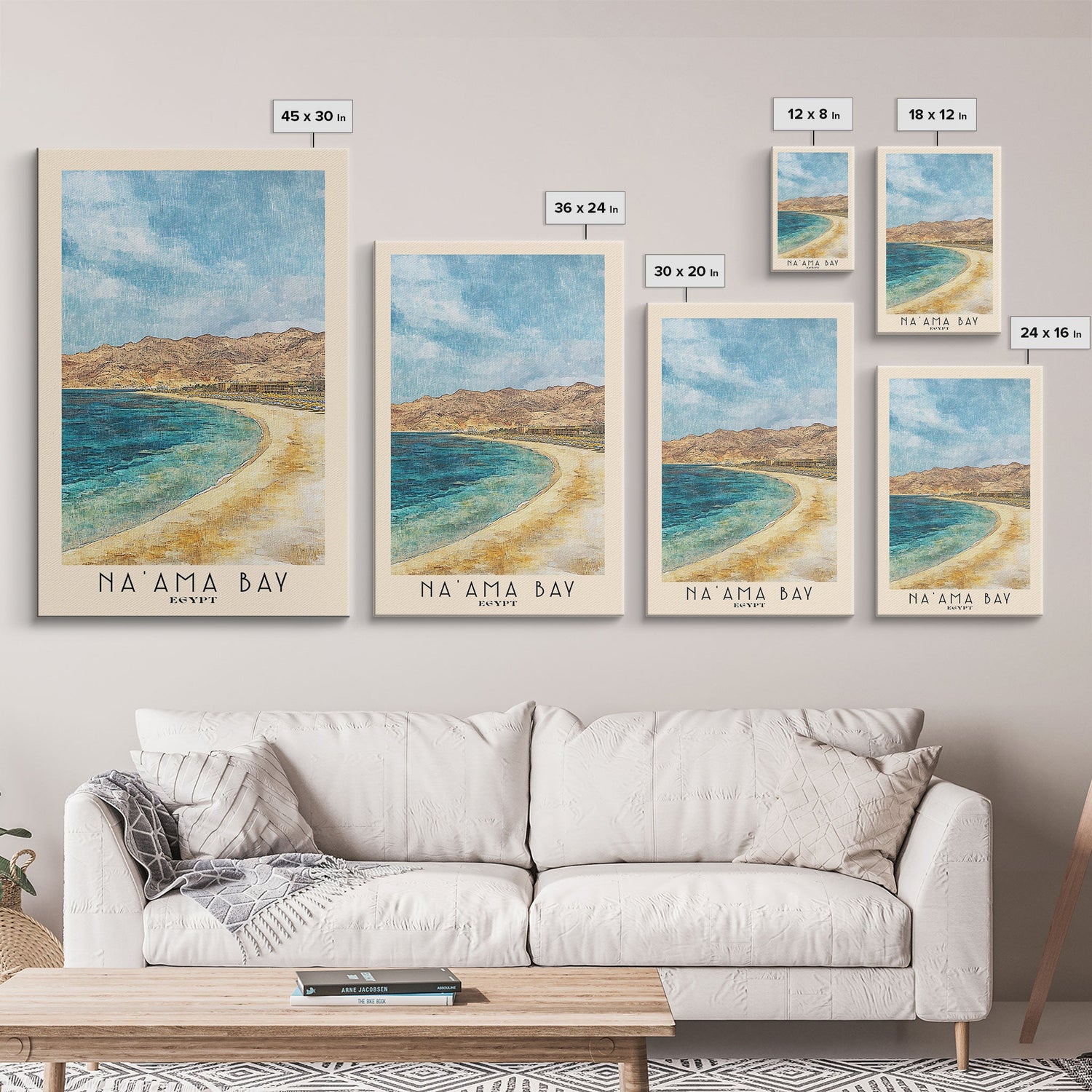 Na’ama Bay, Egypt Watercolor Beach Print, Vacation Gift, Egypt Wall Art, Framed Canvas Print, Framed Beach Painting