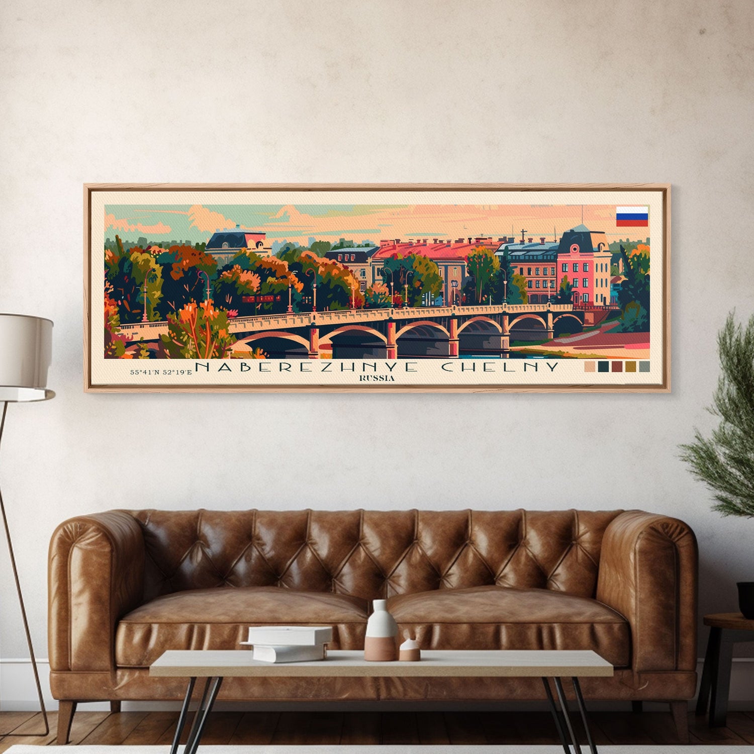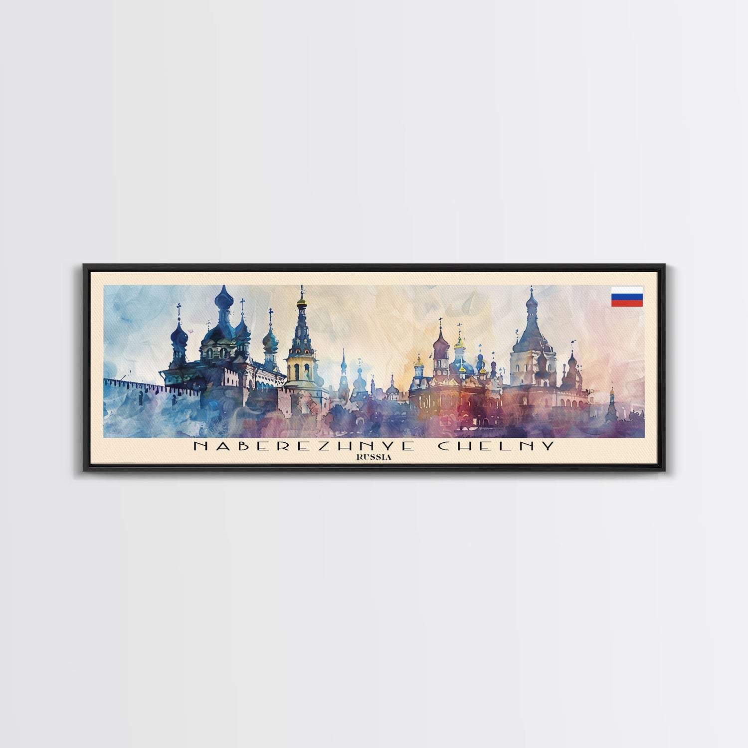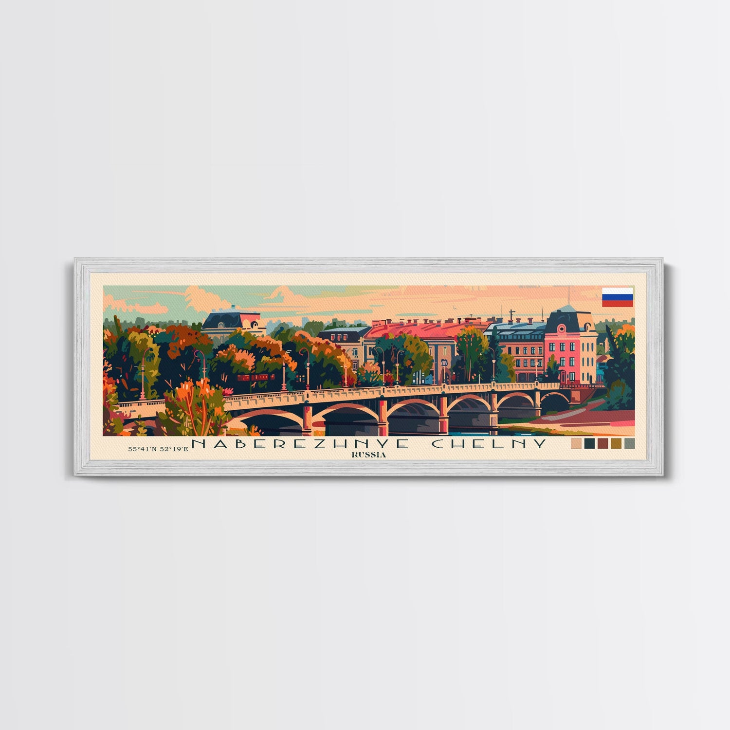 Naberezhnye Russia Travel Art, City Art, Framed Canvas Print or Metal Wall Art, Europe Travel Poster, Panoramic Wall Art, Extra Wide Wall Art
