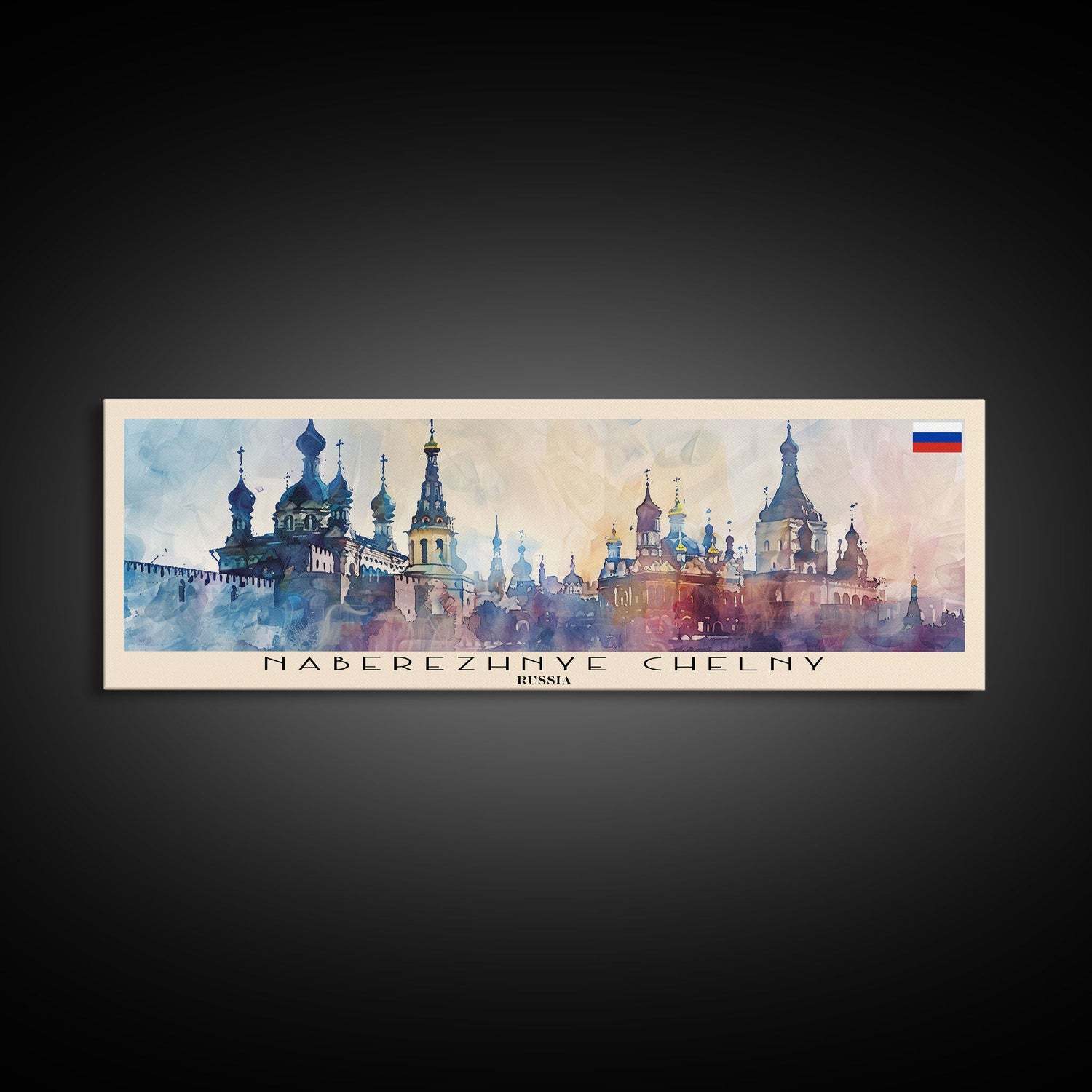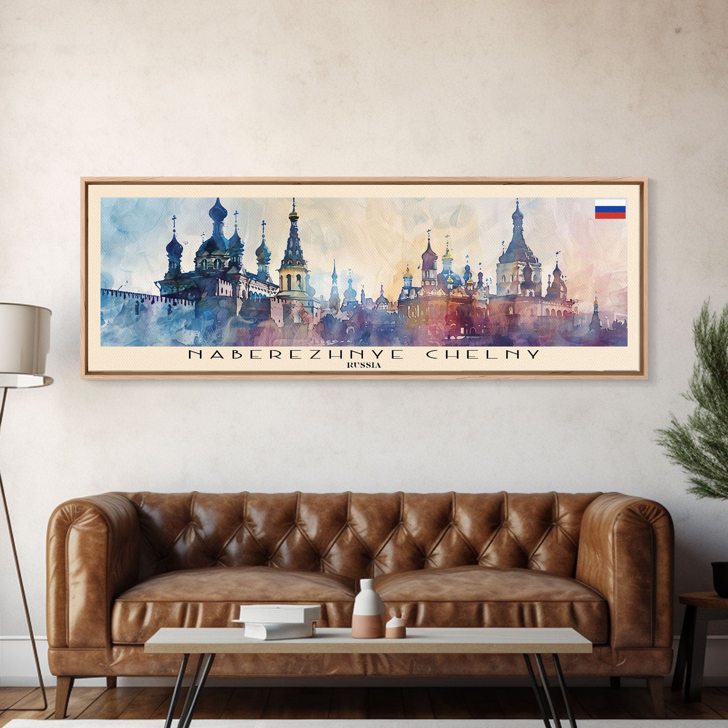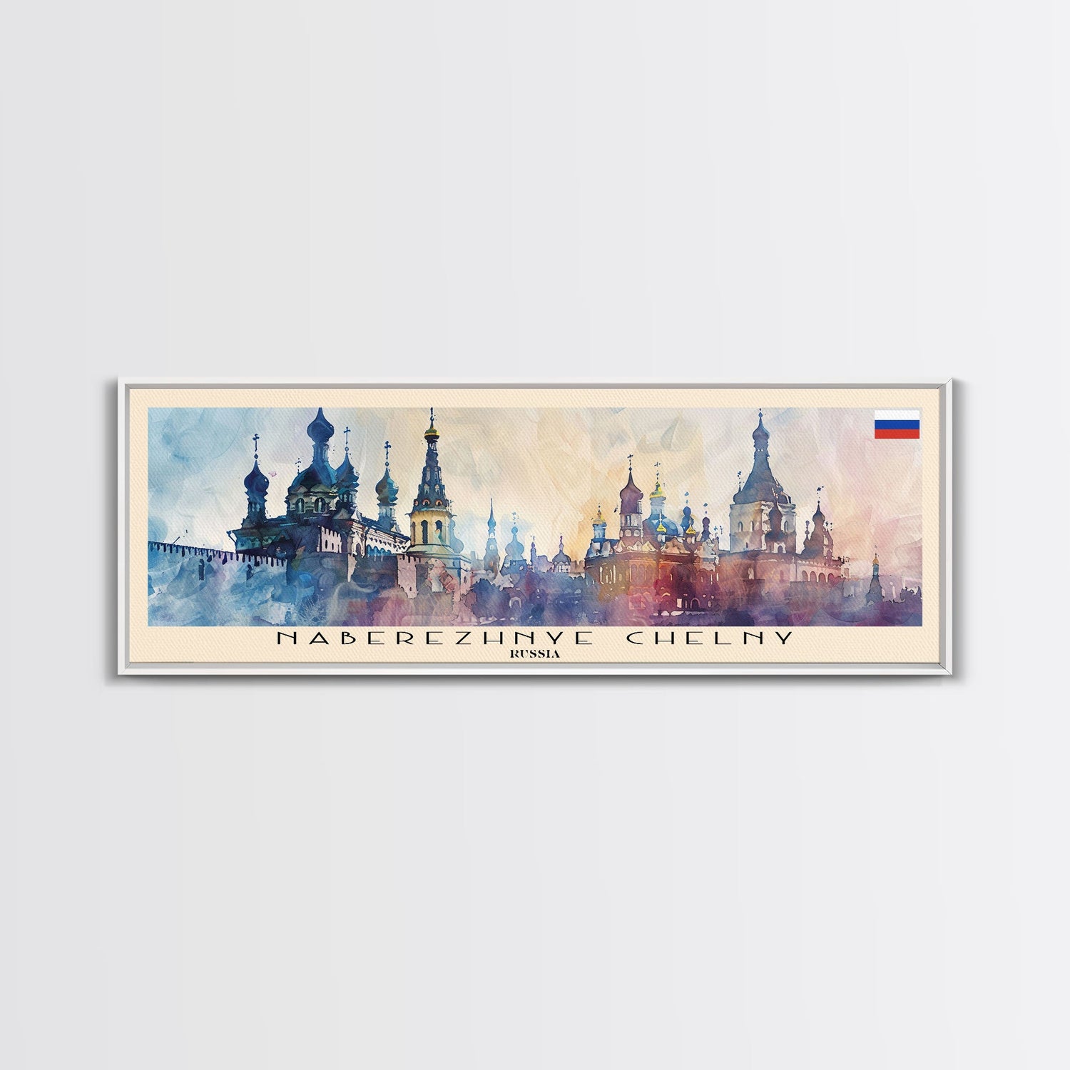 Naberezhnye Russia Travel Art, City Art, Framed Canvas Print or Metal Wall Art, Europe Travel Poster, Panoramic Wall Art, Extra Wide Wall Art