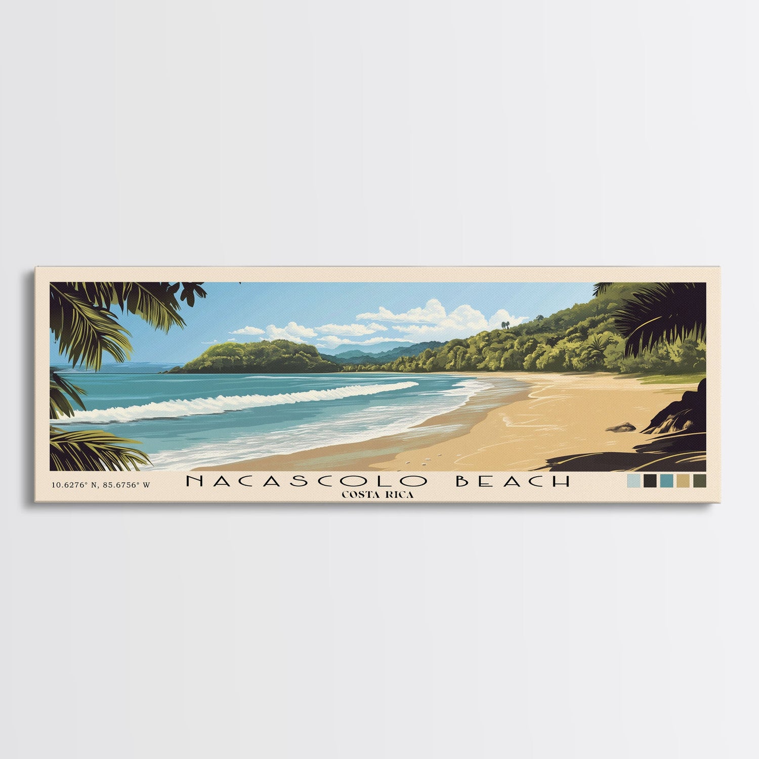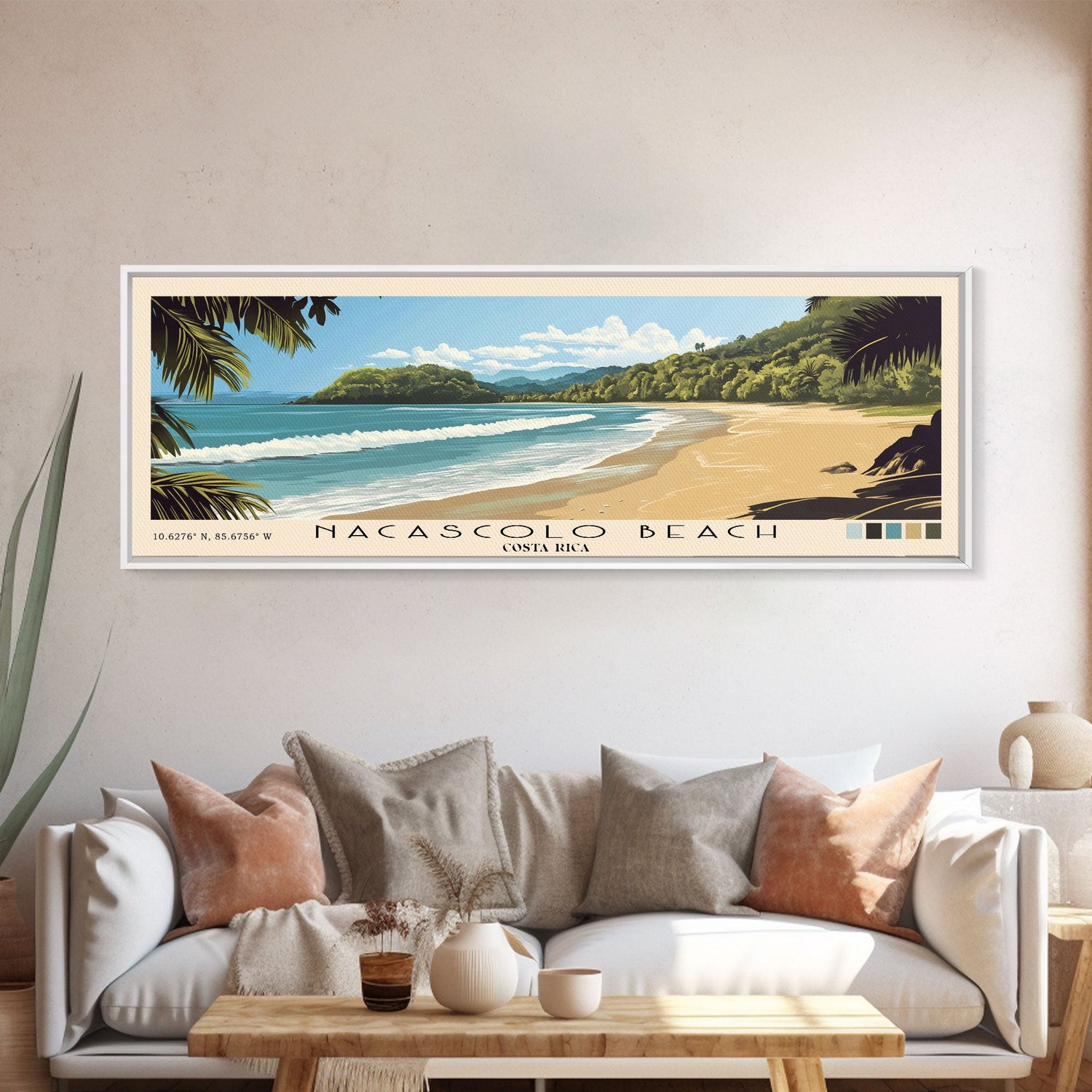 Nacascolo Beach, Costa Rica Panoramic Print, Vacation Gift, Costa Rica Wall Art, Beach Painting, Beach Decor, Large Wall Art, Wood Frame Art