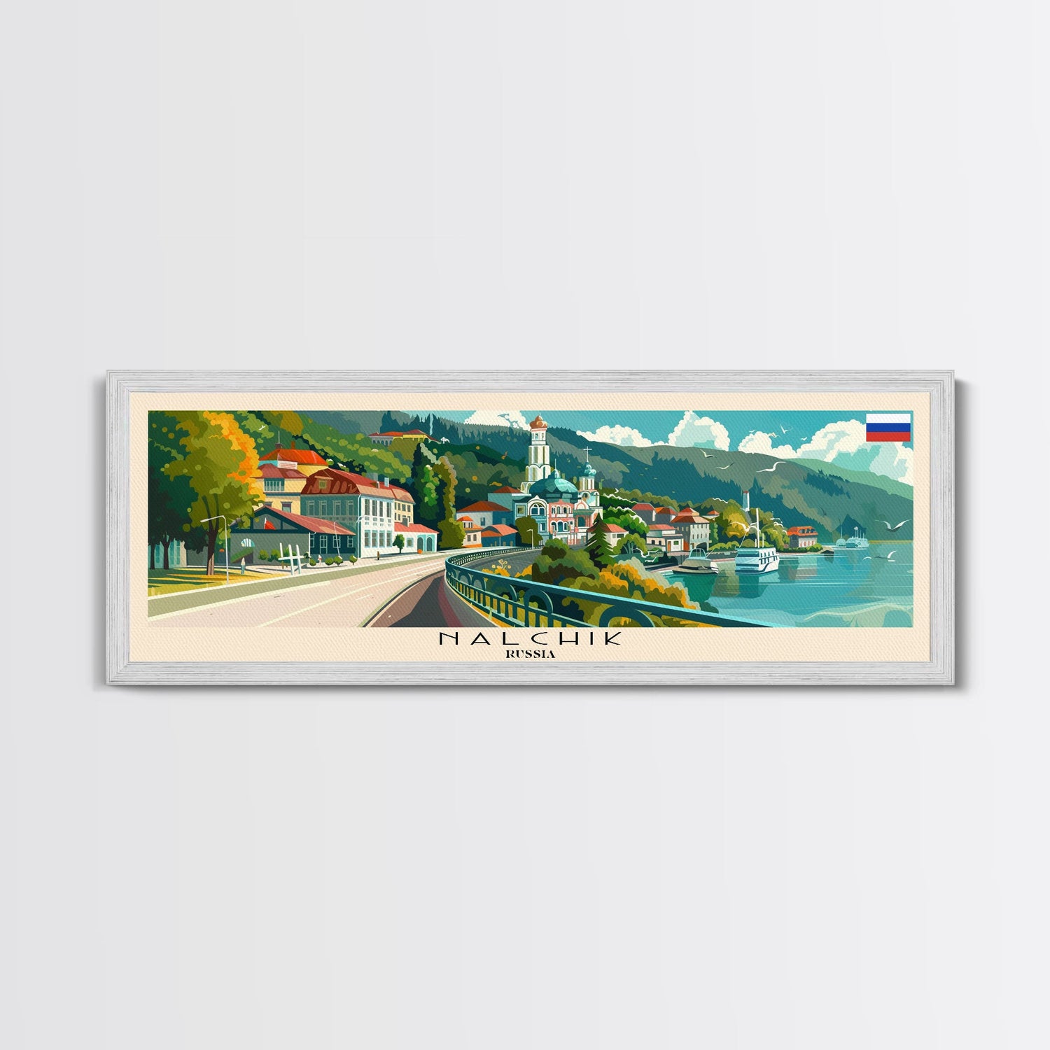 Nalchik Russia Panoramic Travel Poster, Framed Canvas Print or Metal Wall Art, Travel Art, Home Decor, Panoramic Painting, Midcentury Art
