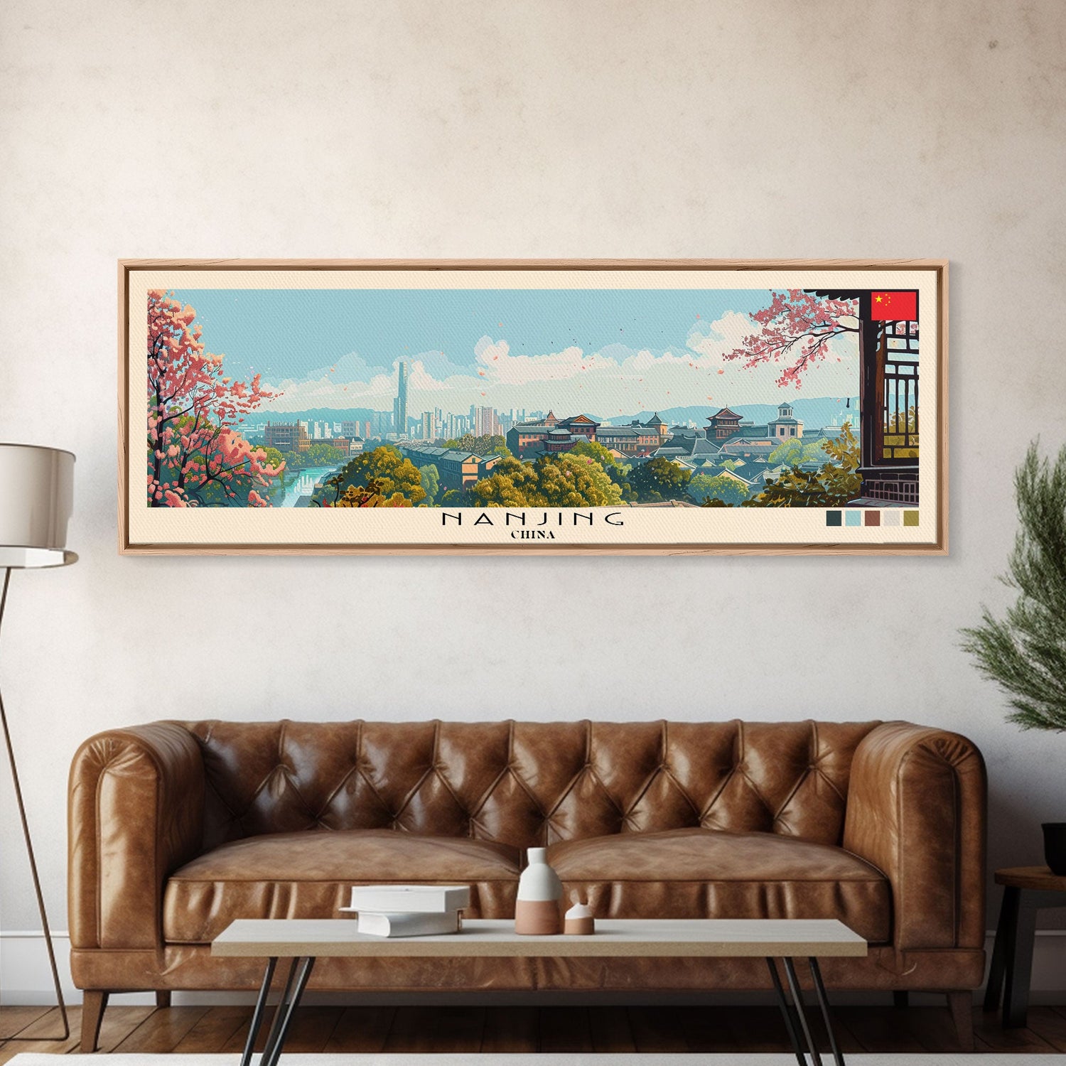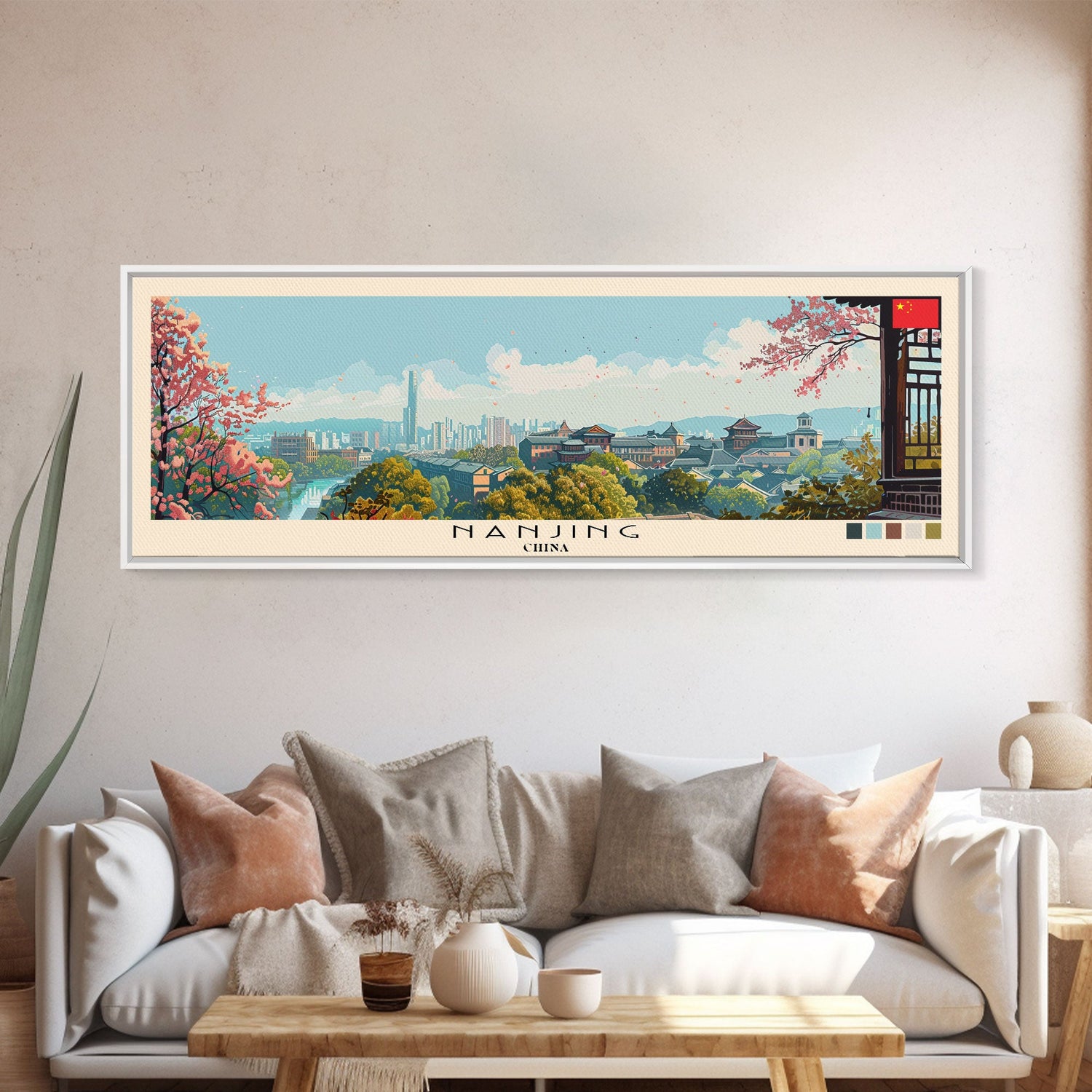 Nanjing, China Panoramic Canvas Print, Nanjing, China Painting, China Art, Nanjing Travel Poster, Travel Art, Housewarming Gift
