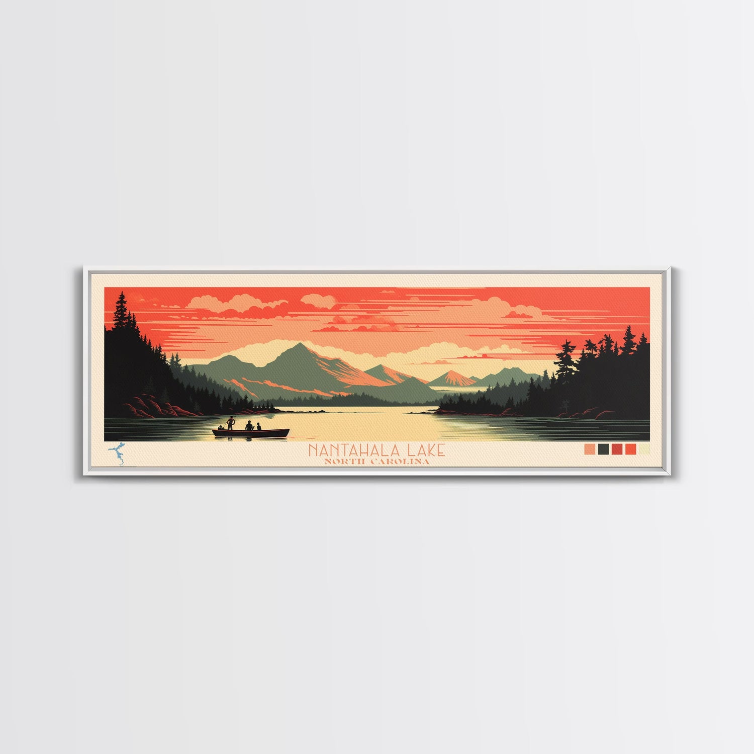 Nantahala Lake, North Carolina Framed Canvas Print, Panoramic Wall Art, Midcentury Modern, Pop Art, Home Decor, Travel Poster, Bedroom Art