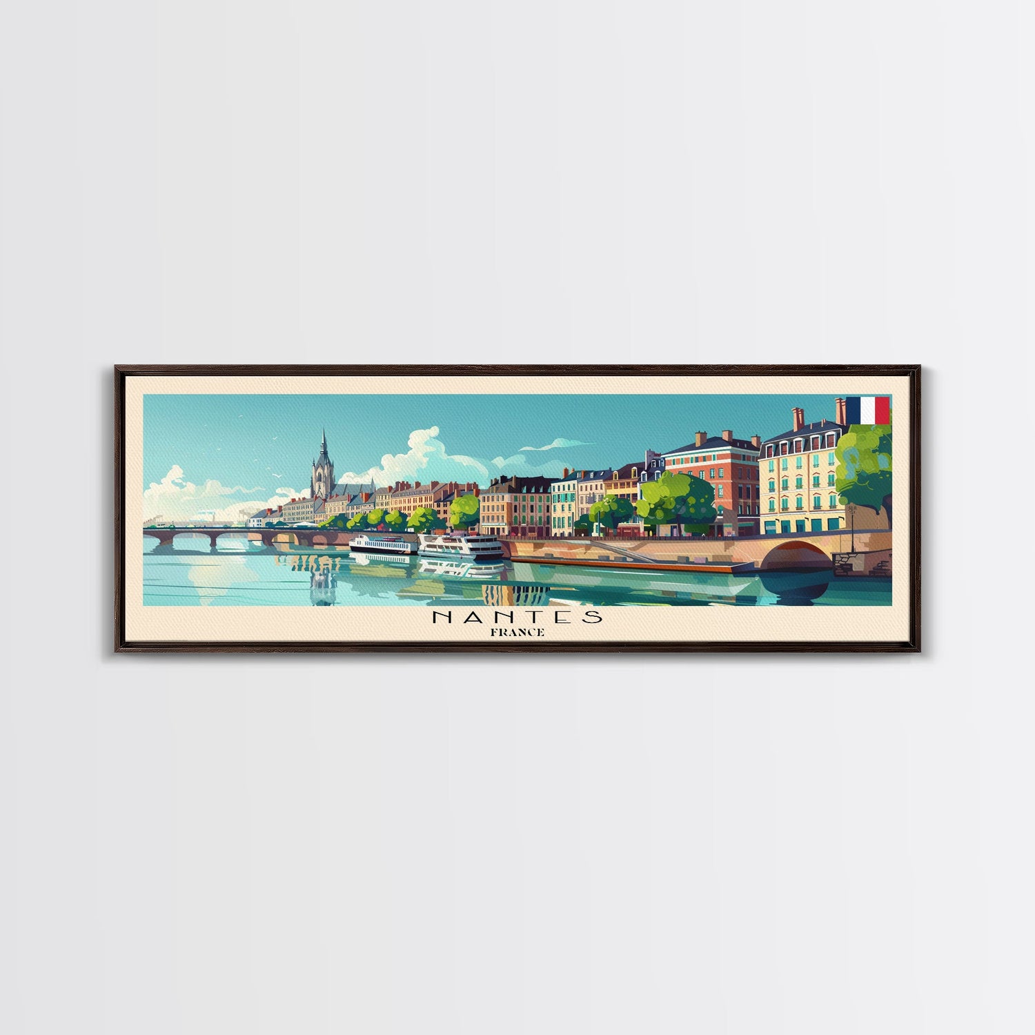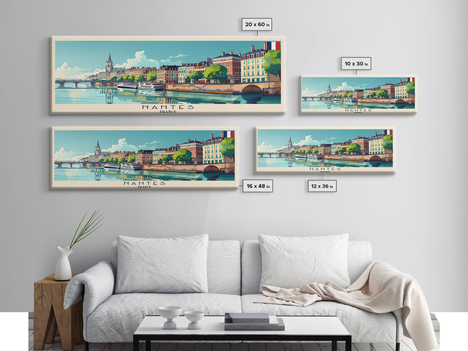 Nantes France Travel Print Wall Art, Panoramic City Art, Travel Art, Wall Decor, Vacation Gift, Framed Canvas Print Or Metal Art