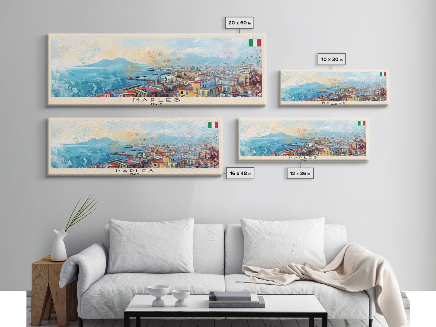 Napoles Italy Travel Art, City Art, Framed Canvas Print or Metal Wall Art, Europe Travel Poster, Panoramic Wall Art, Extra Wide Wall Art - 10x30 Inches / No Frame - Stretched Canvas Only is backordered and will ship as soon as it is back in stock.