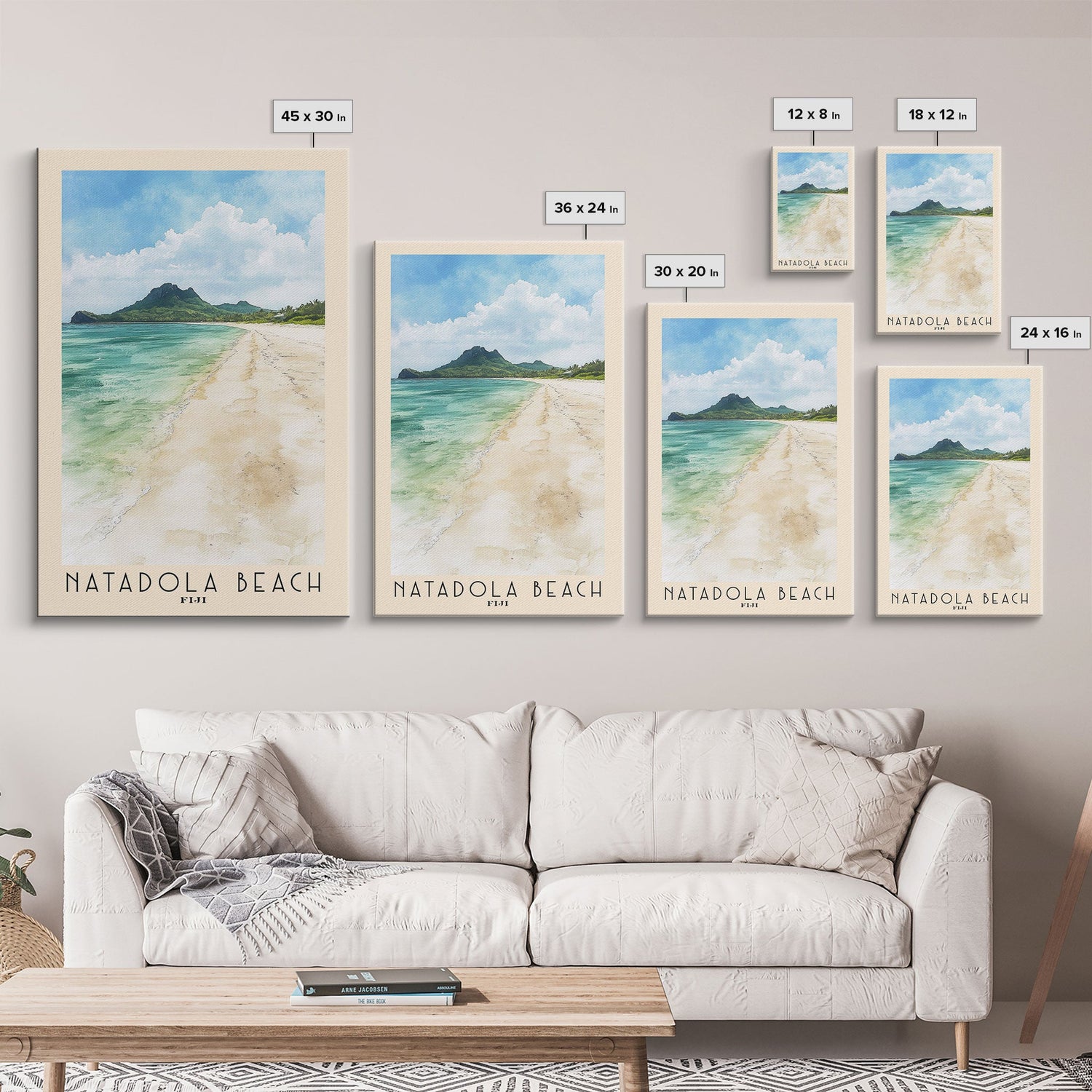 Natadola Beach, Fiji Watercolor Print, Vacation Gift, Fiji Wall Art, Beach Painting, Beach Decor, Large Wall Art, Wood Frame Art - 8x12 Inches / No Frame - Stretched Canvas Only is backordered and will ship as soon as it is back in stock.