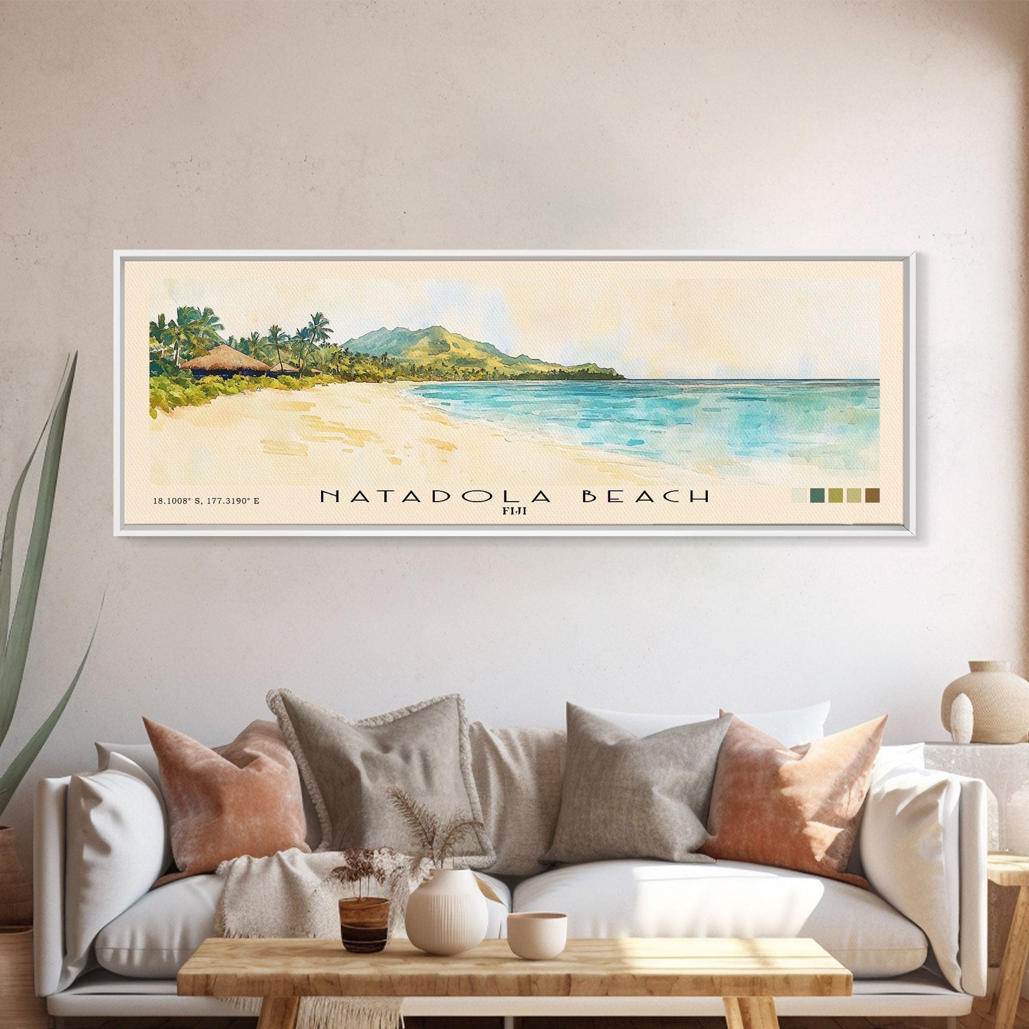 Natadola Beach, Fiji Watercolor Print, Vacation Gift, Fiji Wall Art, Beach Painting, Beach Decor, Large Wall Art, Wood Frame Art - 10x30 Inches / No Frame - Stretched Canvas Only is backordered and will ship as soon as it is back in stock.