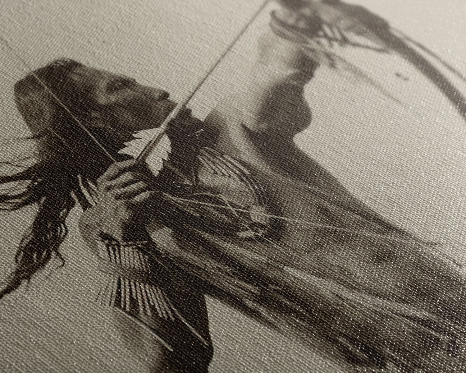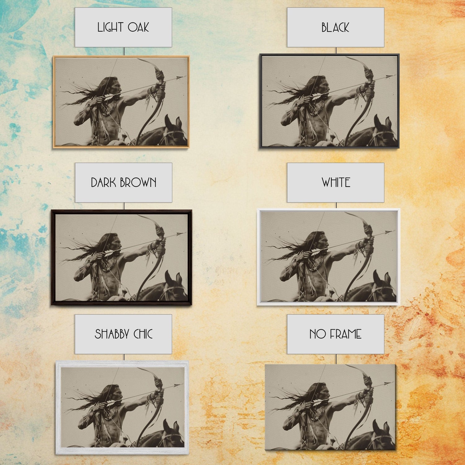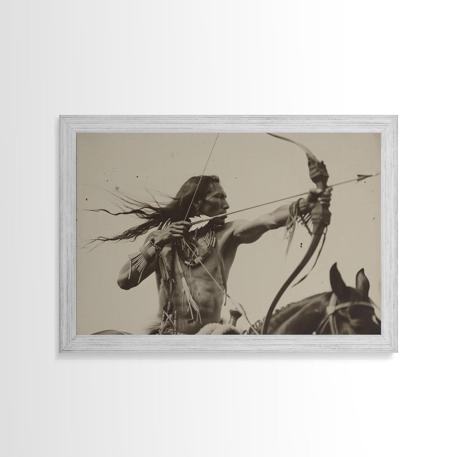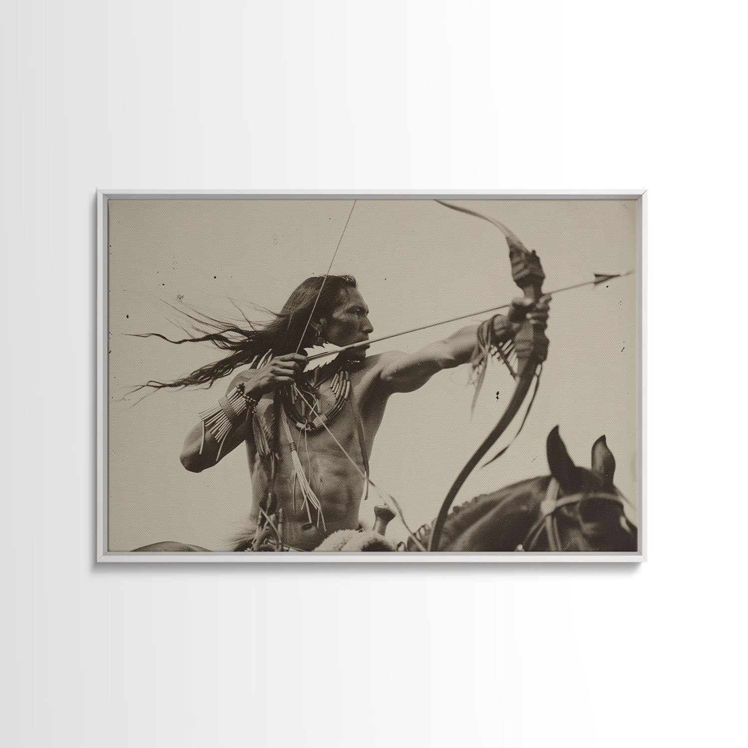 Native American Photo Art, Framed Canvas Print, Bow & Arrow Wall Art, Wild West Decor, Western Art, Country Rustic Wall Art, Metal Art