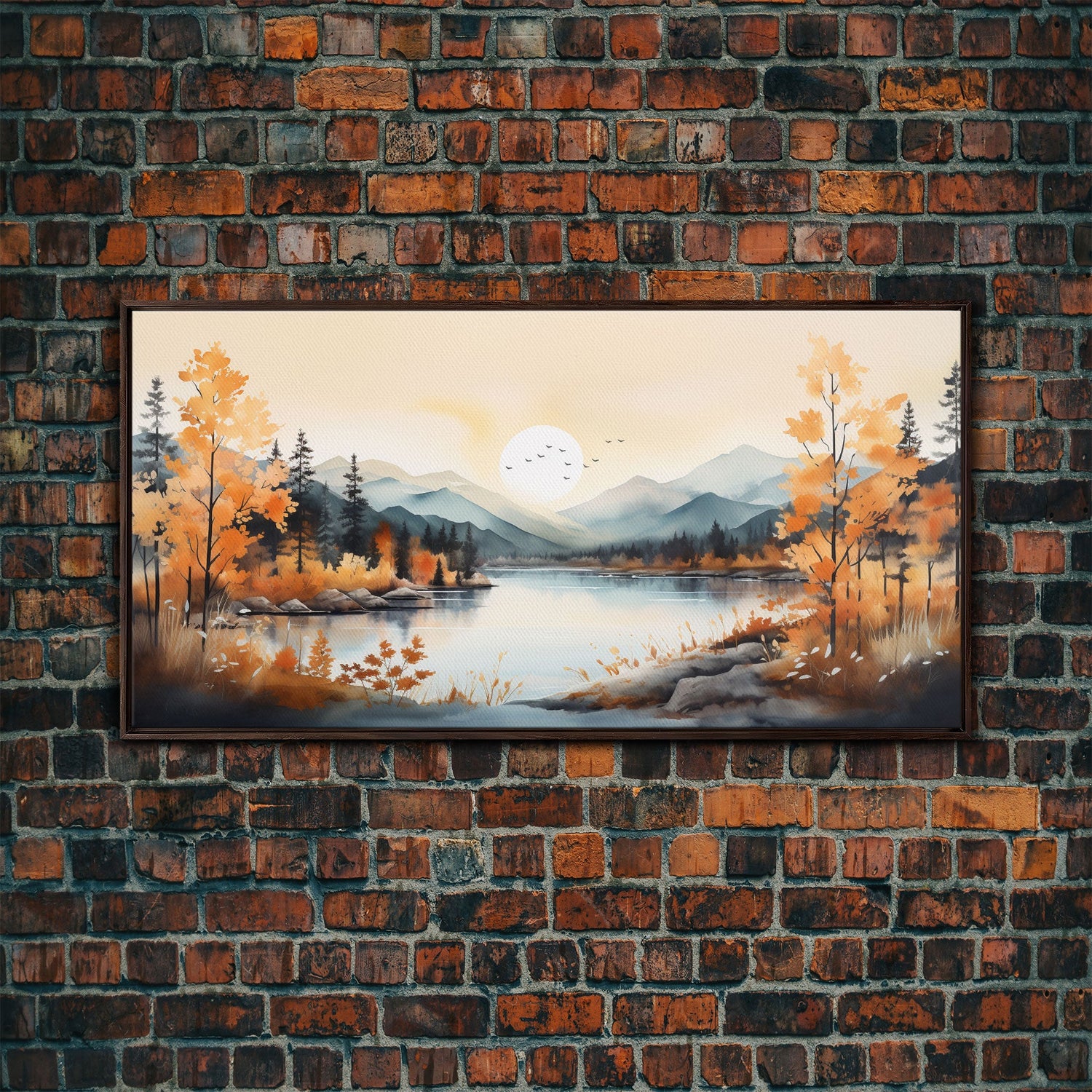 Nature Art, River Wall Art, Watercolor Wall Art, Canvas Print, Wall Hanging, Panoramic Art, Watercolor Botanical Art Print, Country Home Art
