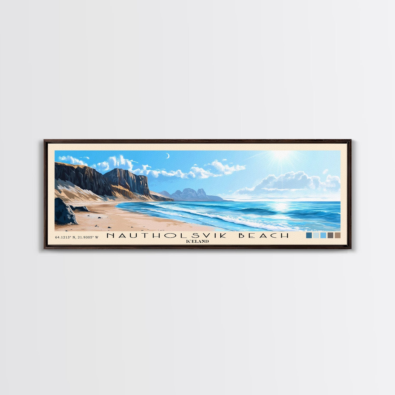Nautholsvik Beach, Iceland Panoramic Print, Vacation Gift, Iceland Wall Art, Beach Painting, Beach Decor, Large Wall Art, Wood Frame Art