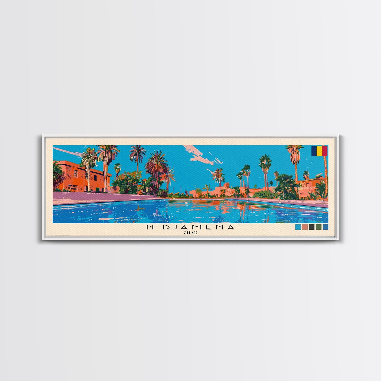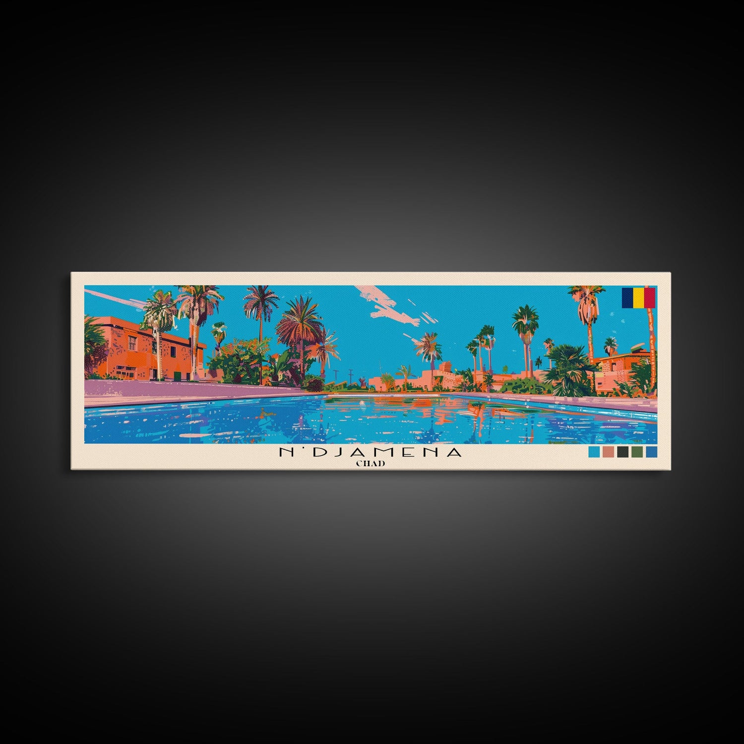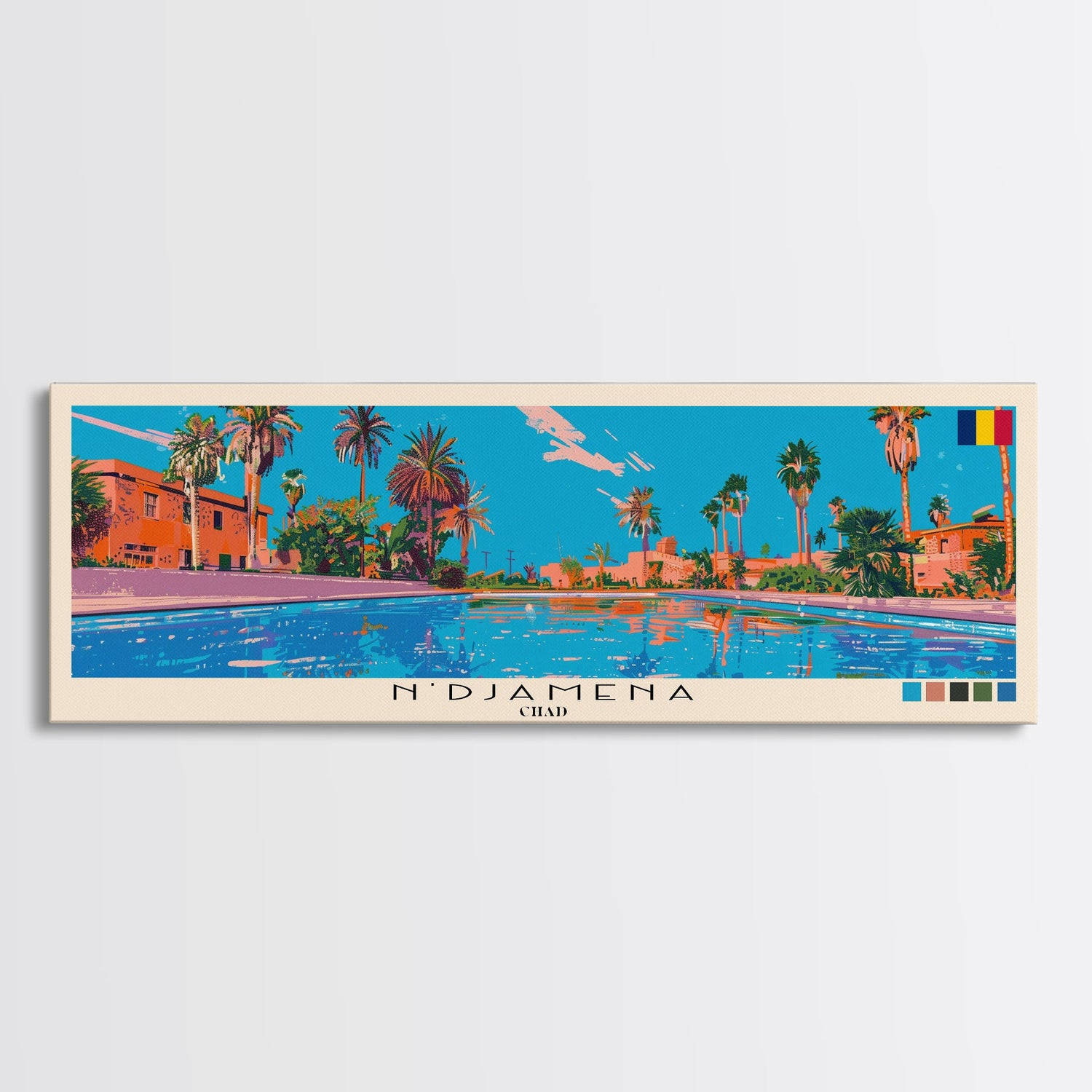 N'Djamena, Chad Panoramic Canvas Print, N'Djamena, Chad Painting, Chad Art, N'Djamena Travel Poster, Travel Art, Housewarming Gift