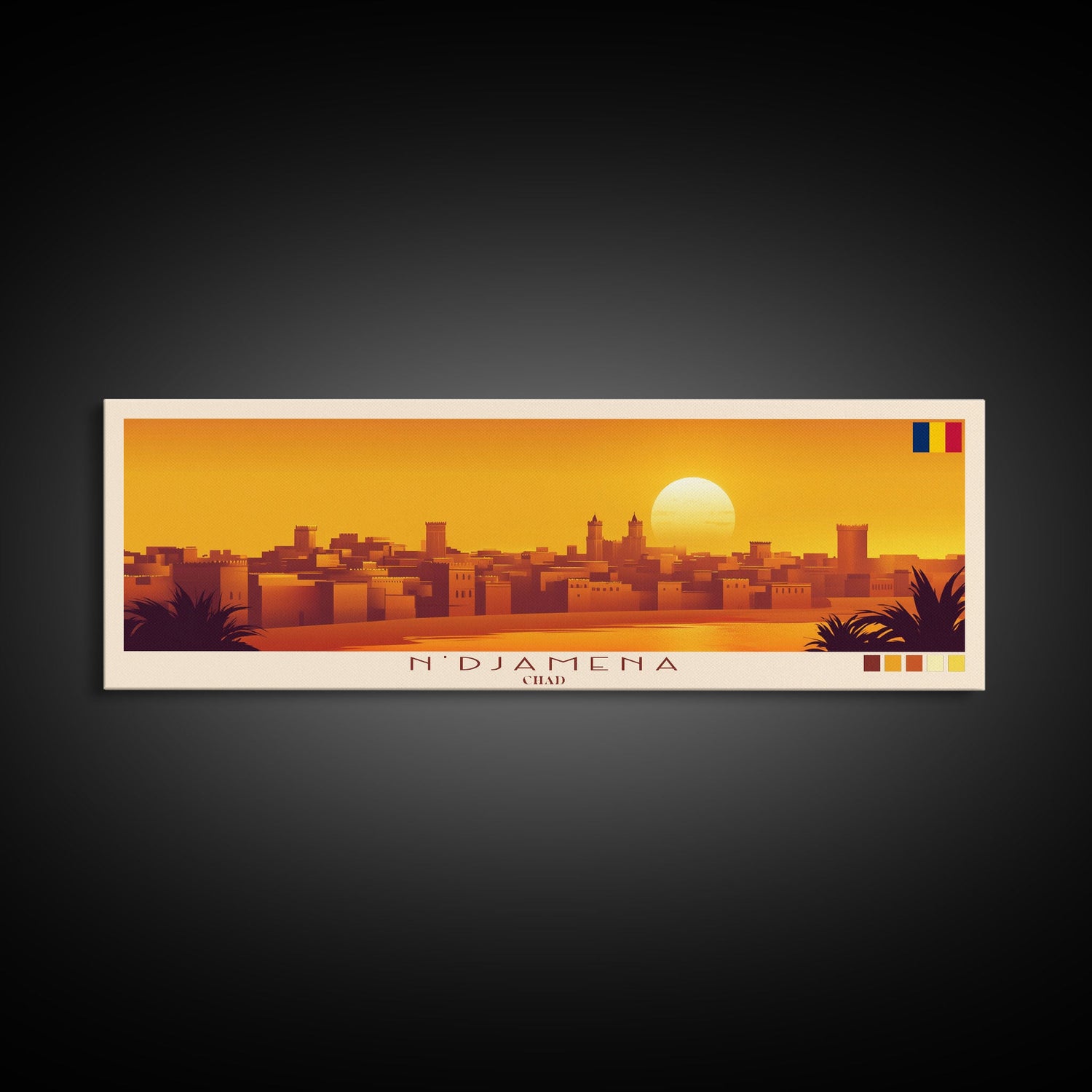 N'Djamena, Chad Panoramic Travel Poster Canvas Print, N'Djamena, Chad Painting, Chad Art, N'Djamena Travel Art, Guest Room Painting