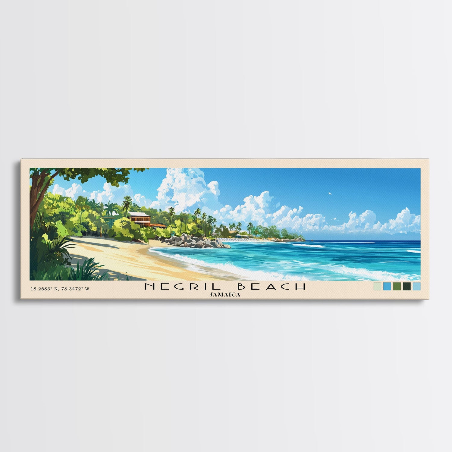 Negril Beach, Jamaica Panoramic Print, Vacation Gift, Jamaica Wall Art, Vacation Wall Art, Vacatation Memories, Beach Decor, Beach Or Lakehouse Art - 10x30 Inches / No Frame - Stretched Canvas Only is backordered and will ship as soon as it is back in stock.