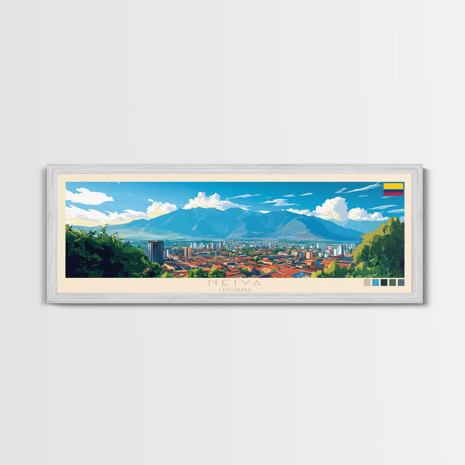 Neiva, Colombia Panoramic Travel Poster Canvas Print, Neiva, Colombia Painting, Colombia Art, Neiva Panoramic Travel Art, Travel Painting