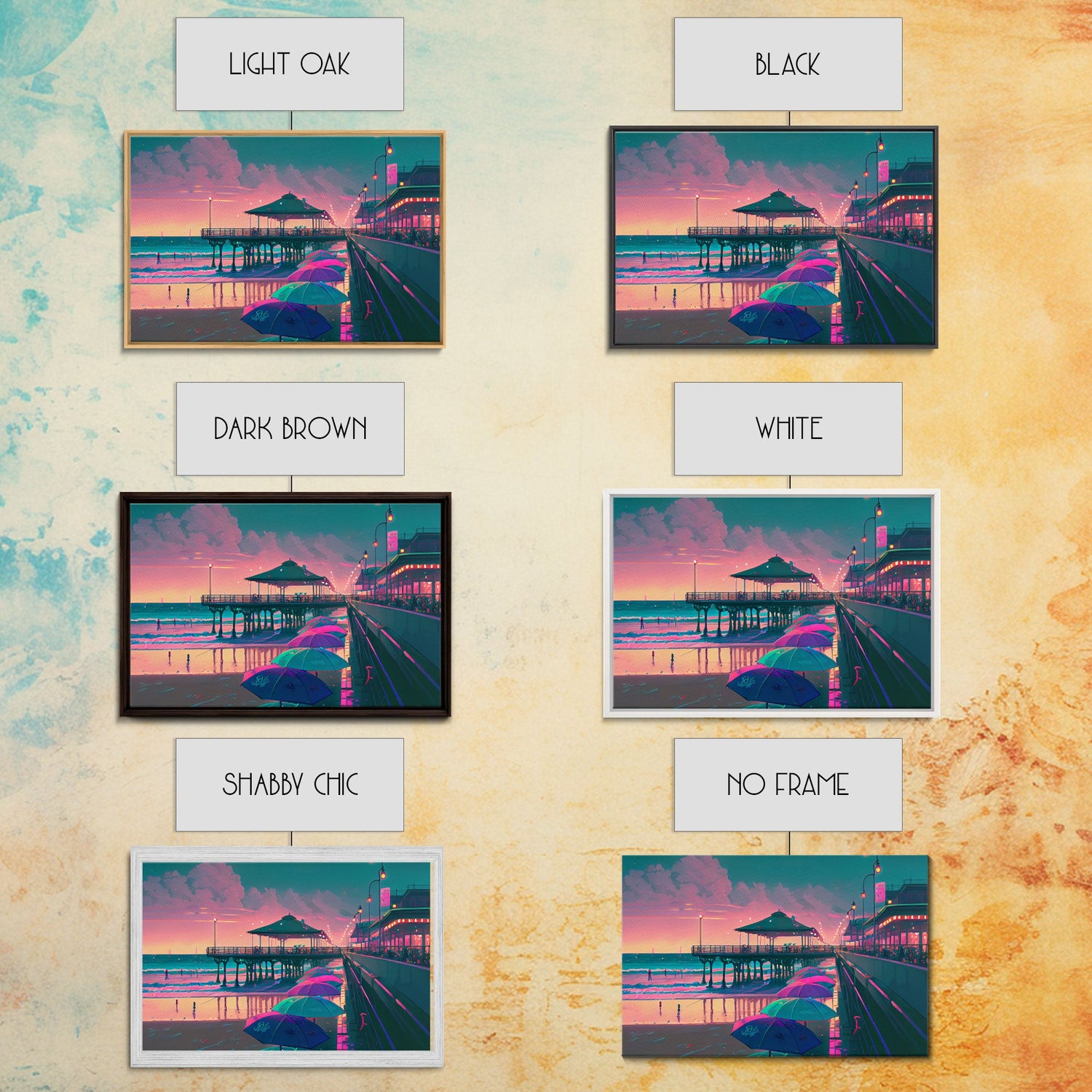 Neon Beach, cool beach house wall decor, synthwave pier and boardwalk, framed canvas print, framed wall art - 8x12 Inches / No Frame - Stretched Canvas Only is backordered and will ship as soon as it is back in stock.